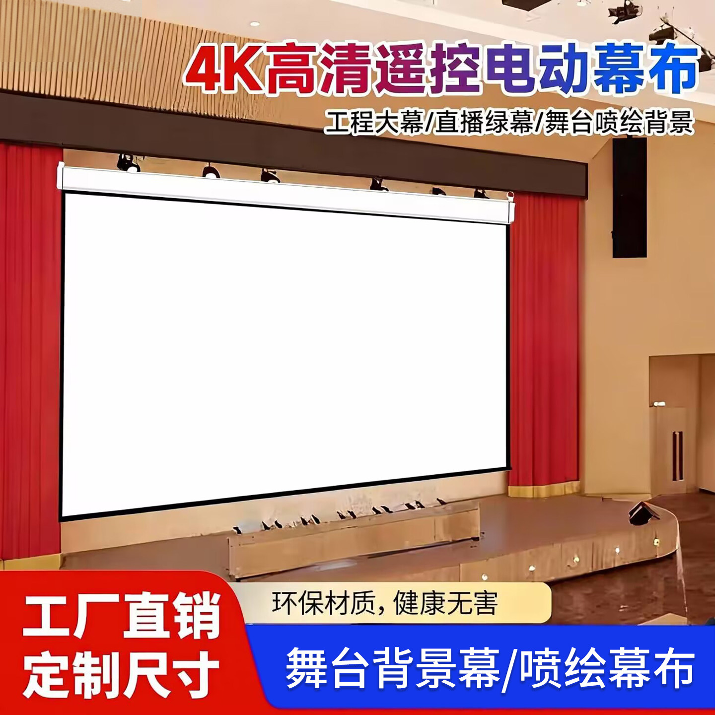 电动高清UV喷绘背景打印幕布广告logo会议办公宣传大型自动升降工程投影幕布图案商场电动背景幕升降卷帘幕布