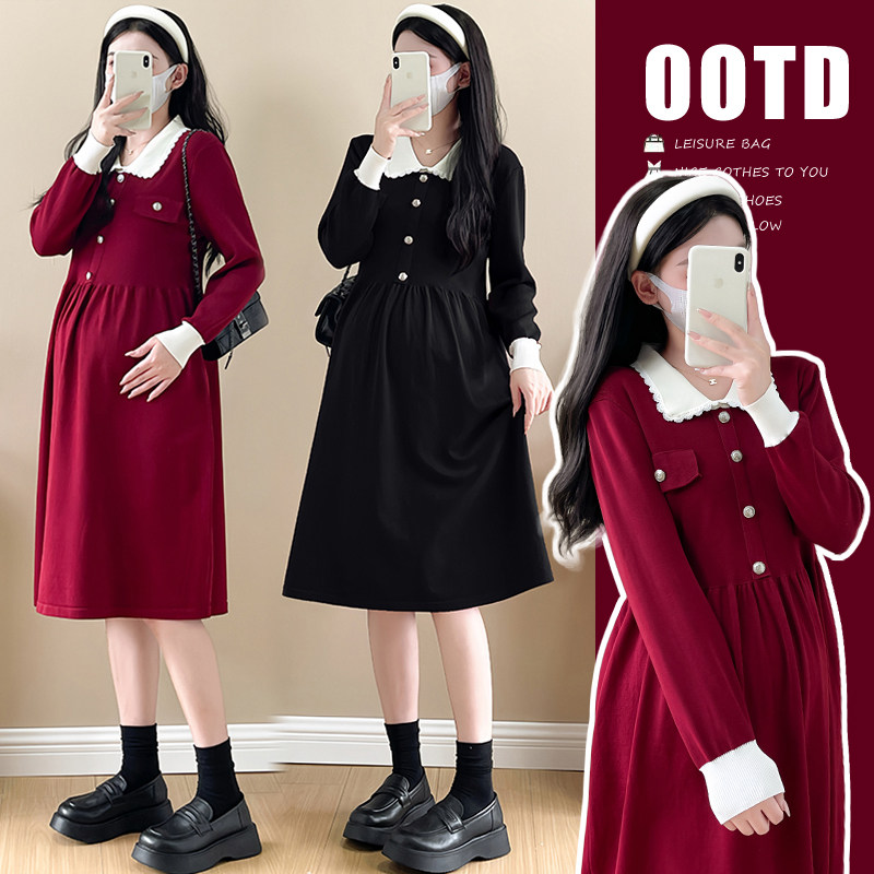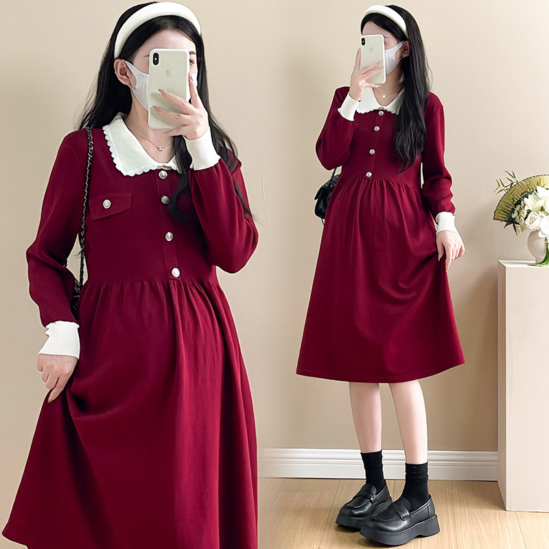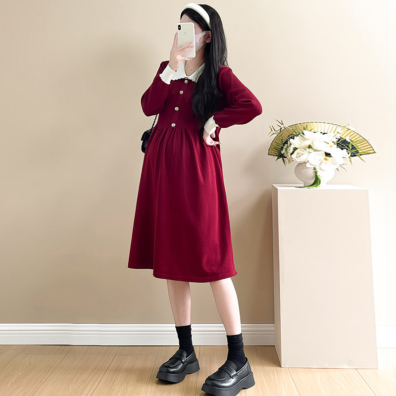 婧麒孕妇装孕妇连衣裙孕妇裙子过年洋气冬装孕期漂亮新年红色穿搭