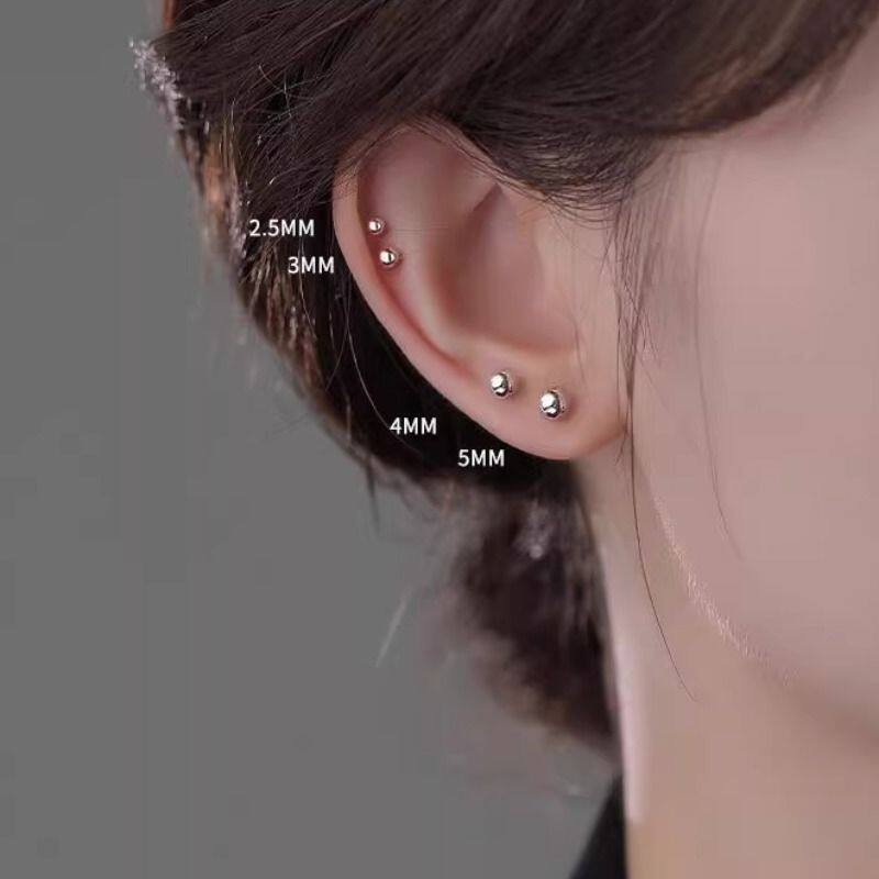 银耳钉女999纯银防过敏耳环男豆豆养耳棒耳骨钉睡觉免摘学生耳饰