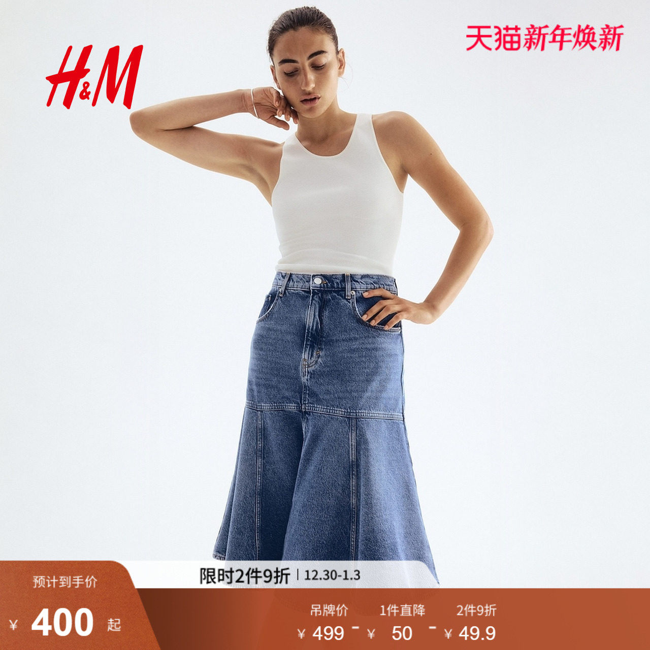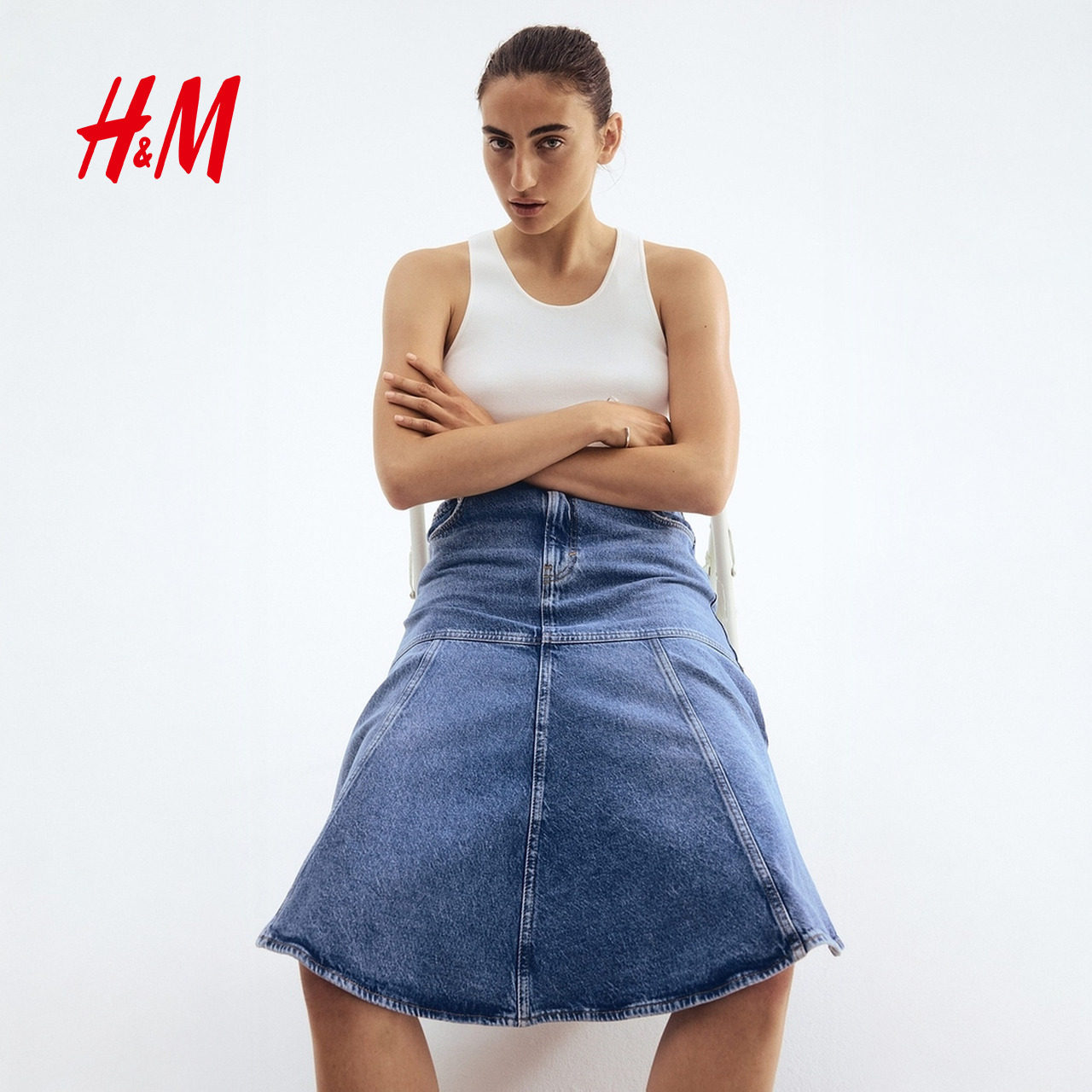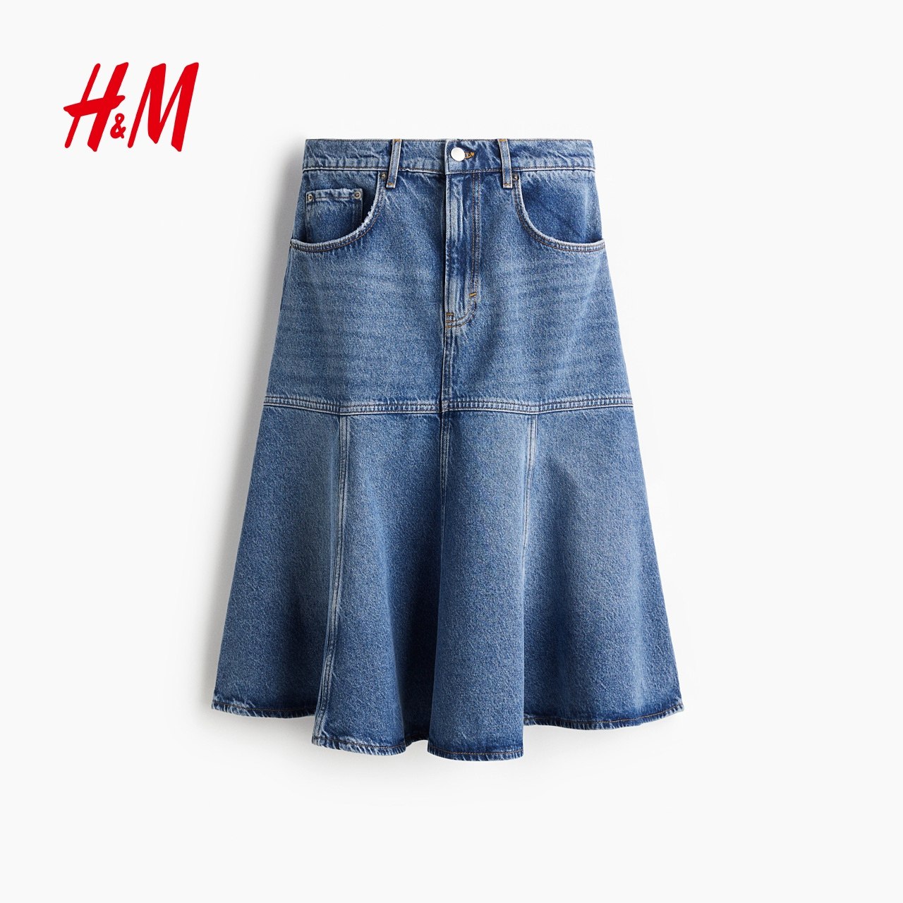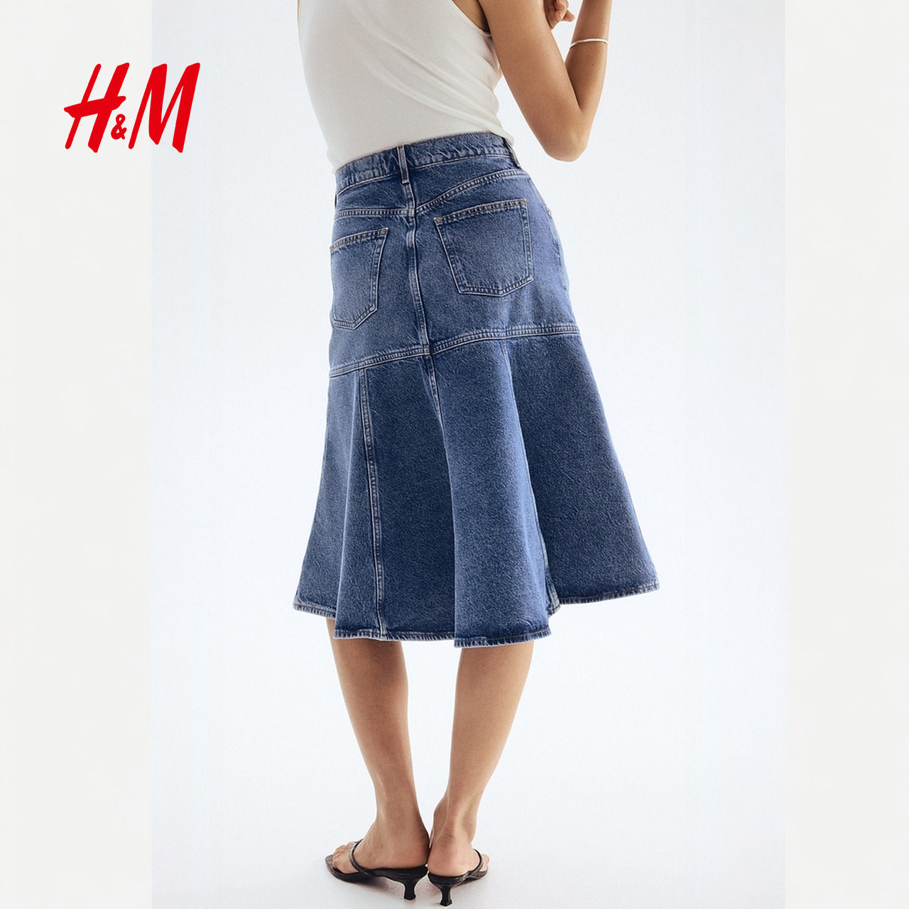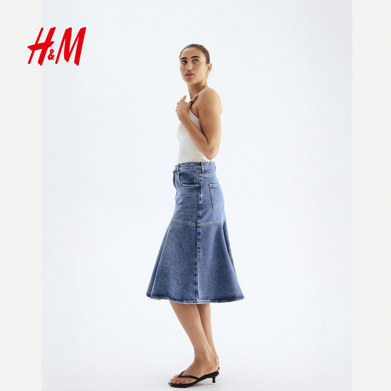 HM2025年夏季新款女装时尚休闲喇叭牛仔半身裙1298303