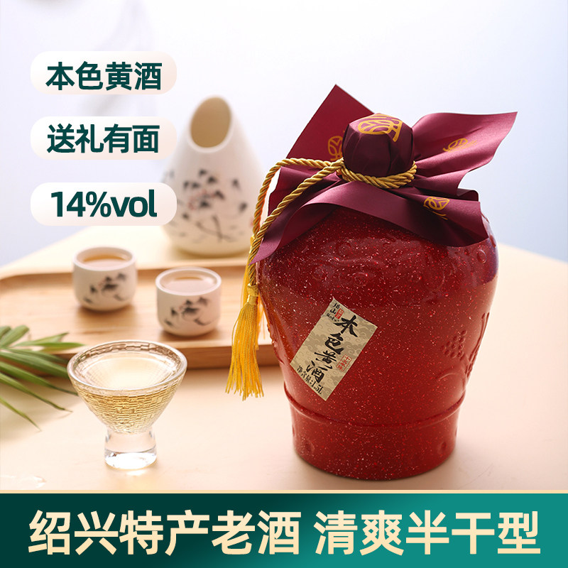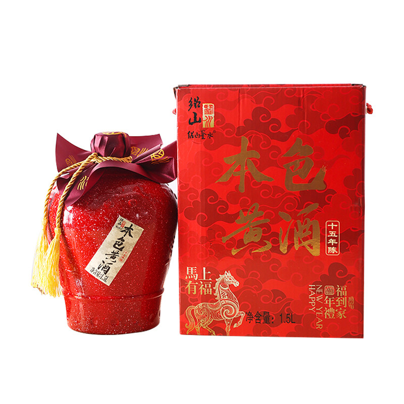 绍山鉴水十五年陈无焦糖色黄酒1.5L礼盒装 绍兴本色花雕糯米老酒