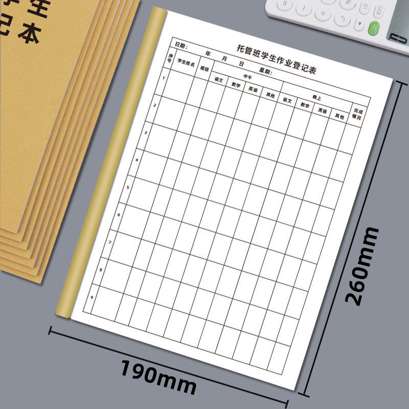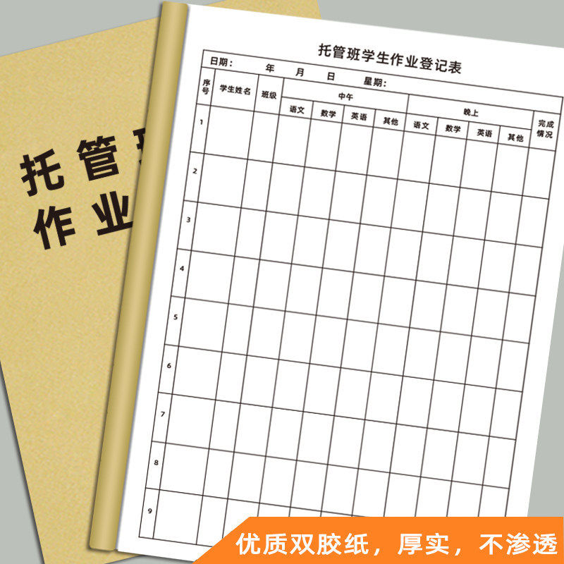 托管班学生作业登记本学生作业完成情况信息登记本课时登记本听课