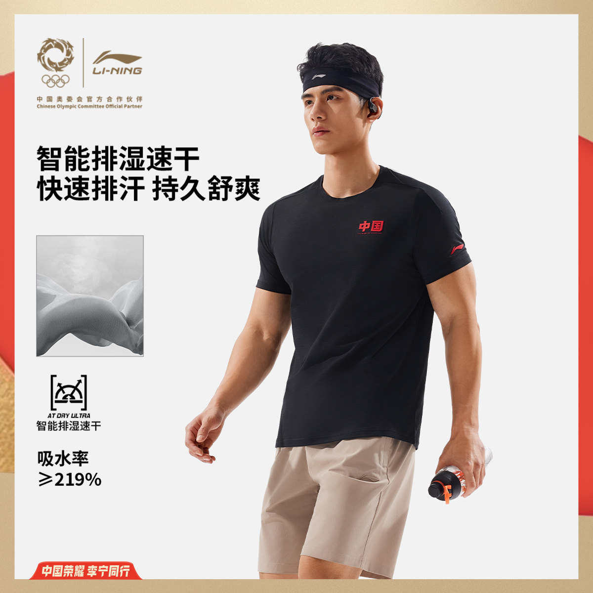 李宁荣耀系列短袖T恤男士夏季官方新款健身跑步速干上衣男运动服