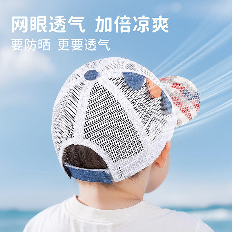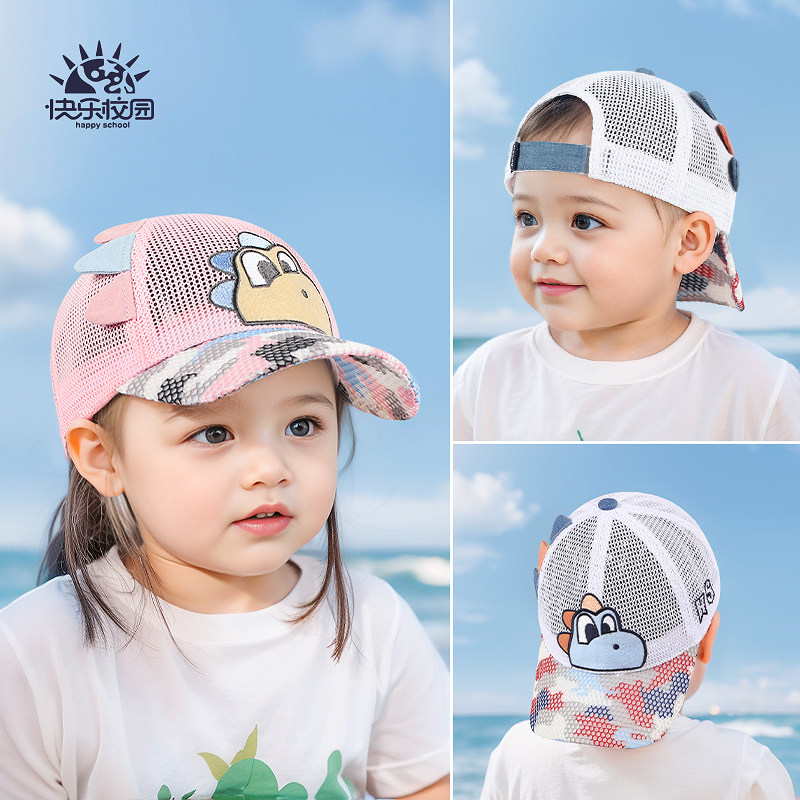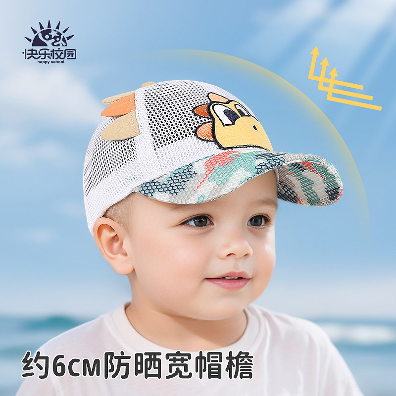 快乐校园夏季儿童网眼棒球帽男女宝宝户外遮阳鸭舌帽镂空透气网帽