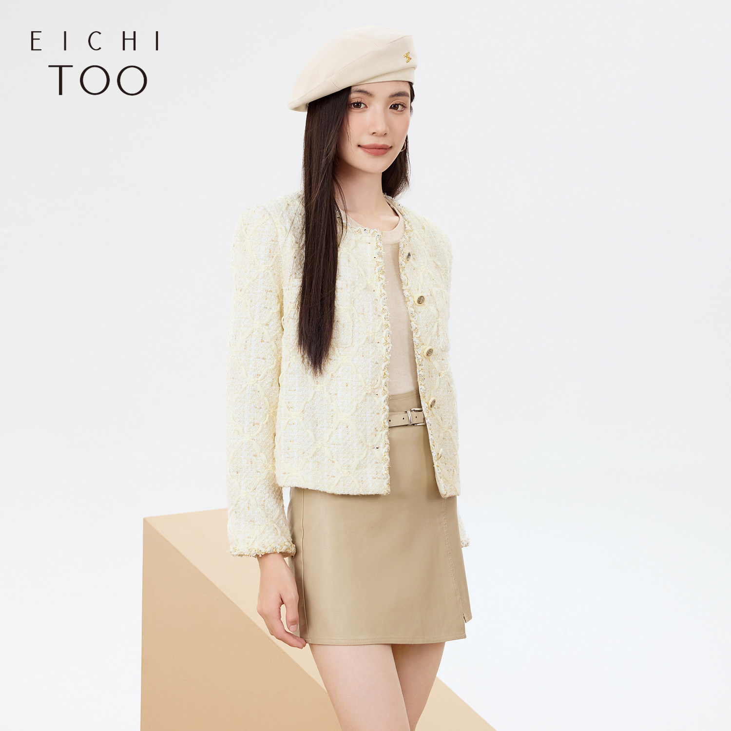 爱居兔小香风外套女春秋新款优雅时尚花呢夹克