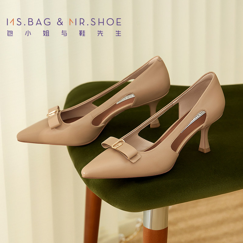 【明星同款|静音系列】千百度练习曲裸色高跟鞋真皮通勤法式单鞋