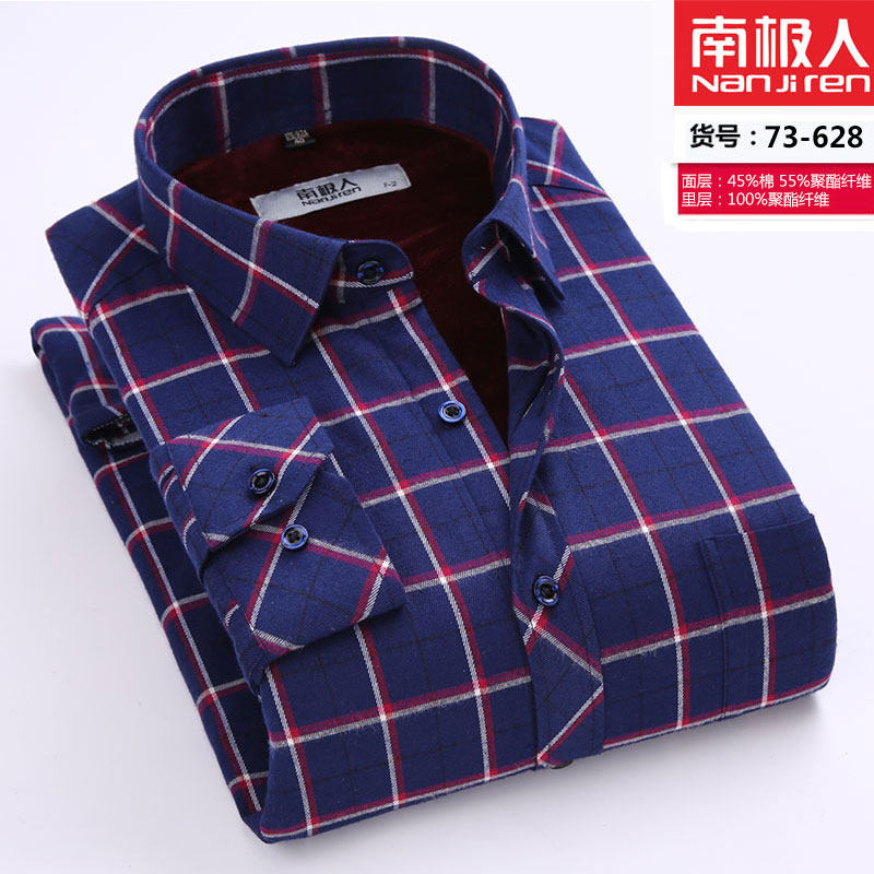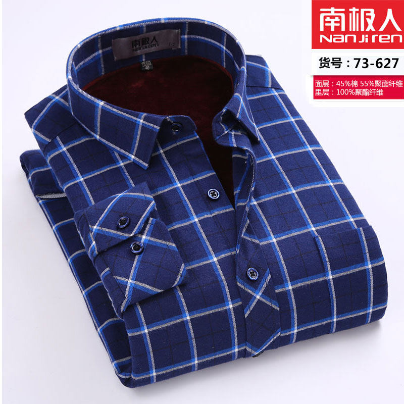 南极人男士男式保暖衬衫加绒加厚涤棉磨毛格子保暖衬衣爸爸款清仓