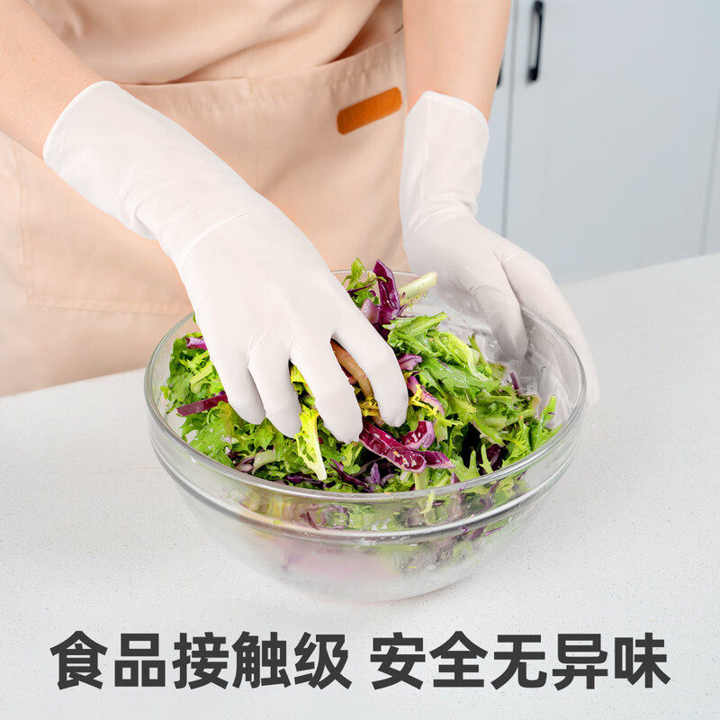 A一次性丁腈手套家务防护耐用型加厚加长橡胶乳胶厨房清洁手套