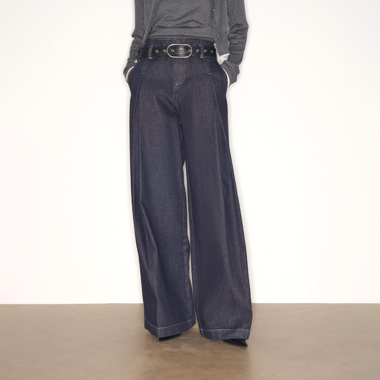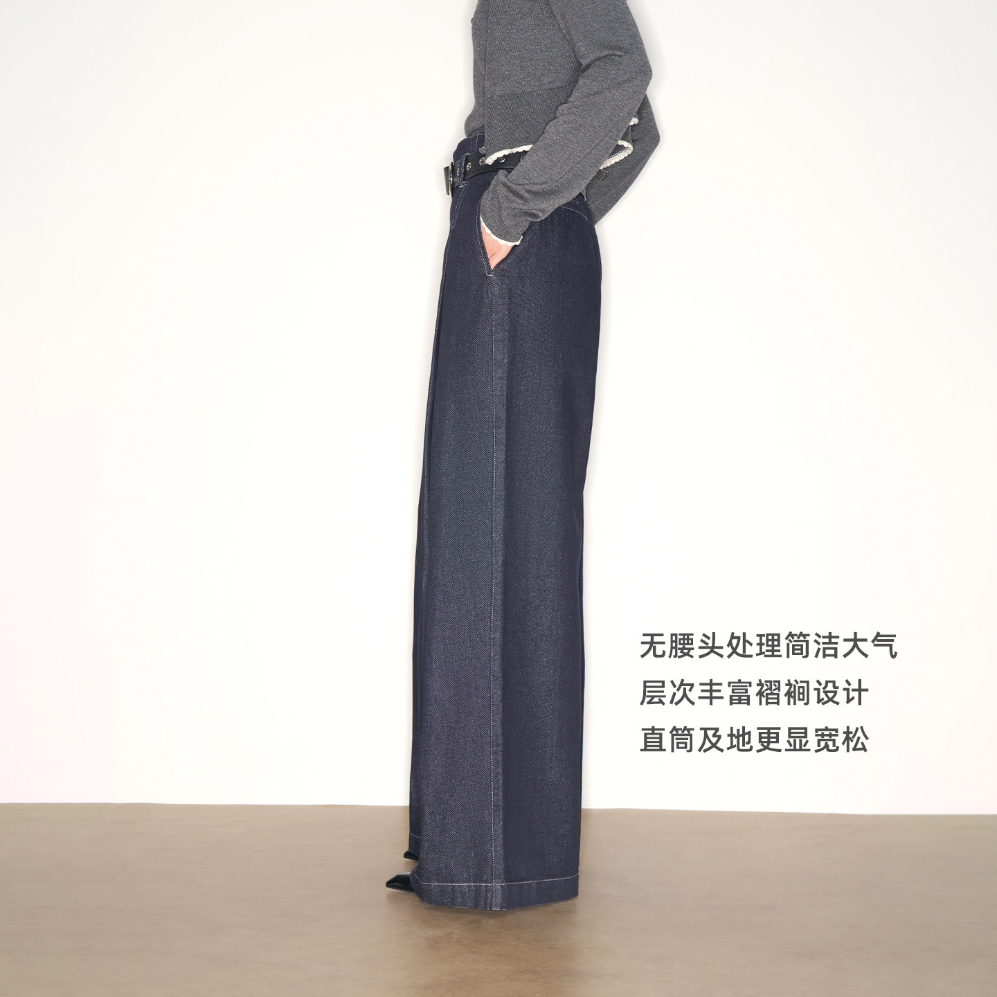 藏肉阔腿牛仔裤 棉混纺原色牛仔挺阔有型