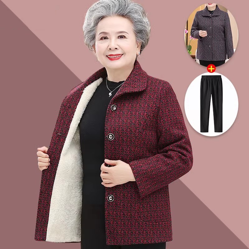 中老年人秋装外套女奶奶装毛呢加绒加厚棉袄妈妈冬装羊羔绒老太太