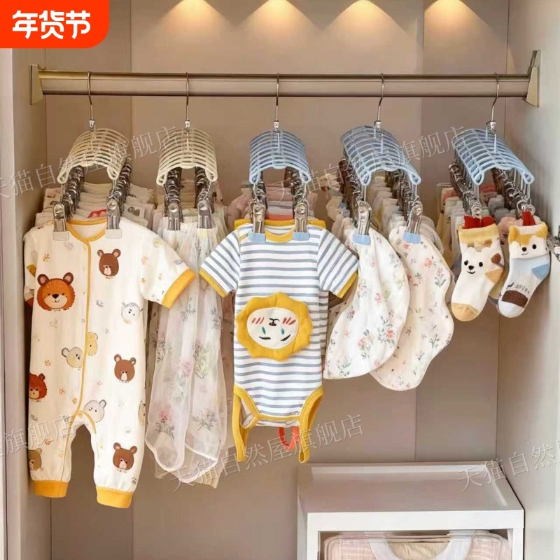 婴儿衣柜收纳神器儿童衣架宝宝口水巾袜子多夹子家用晾晒衣架折叠