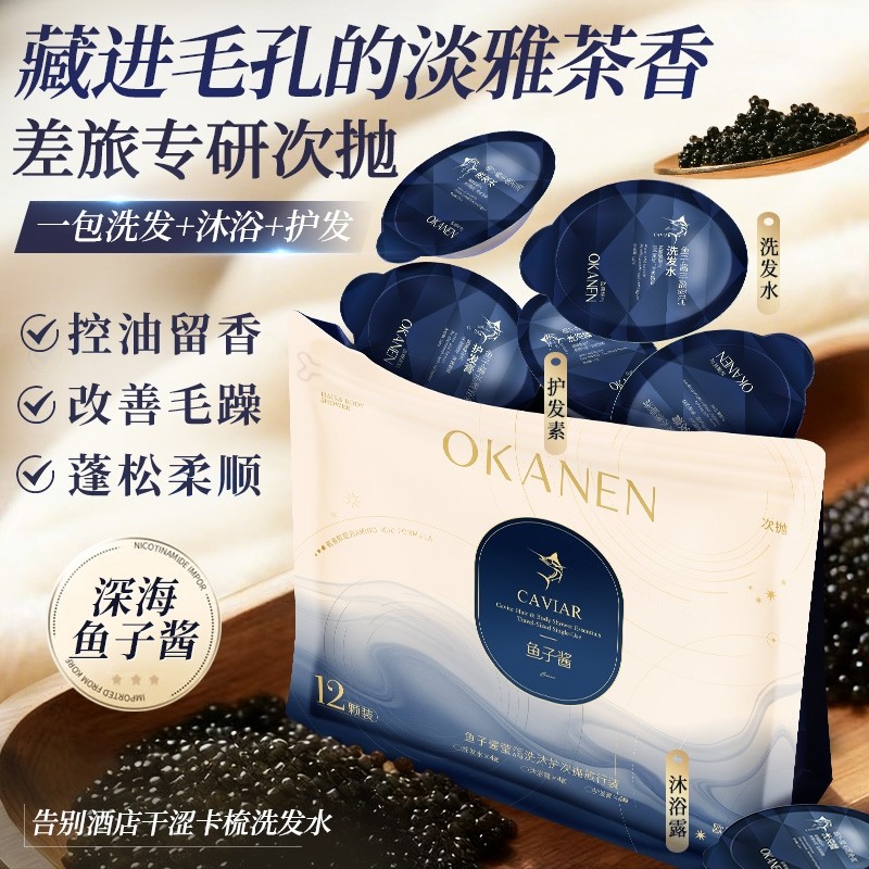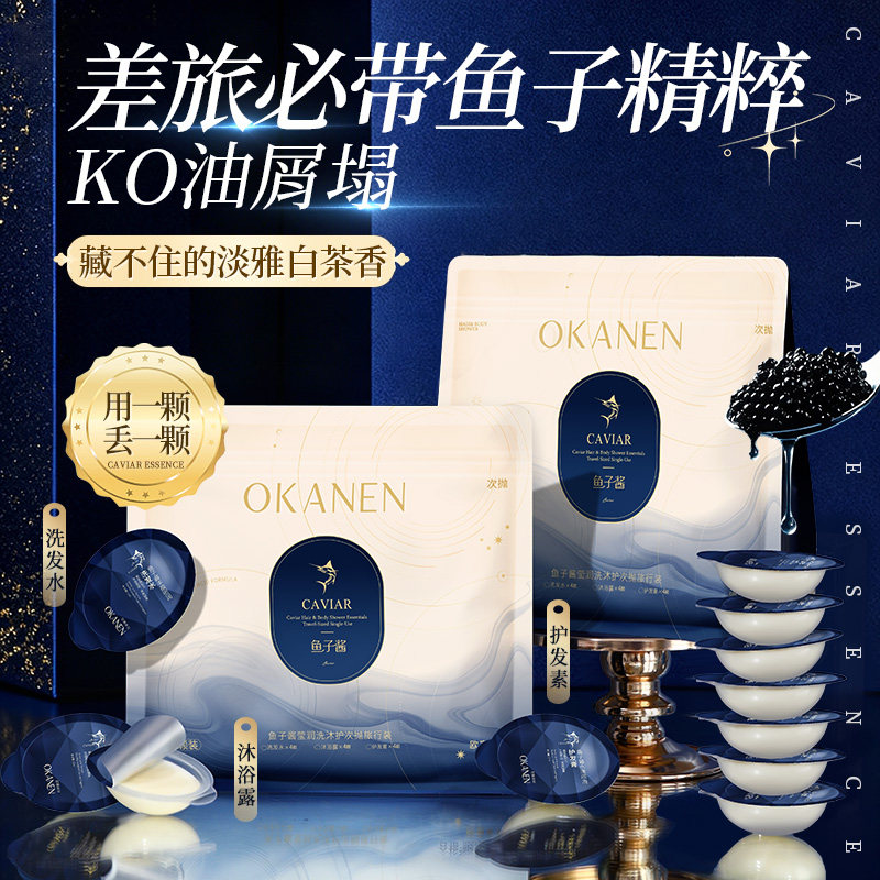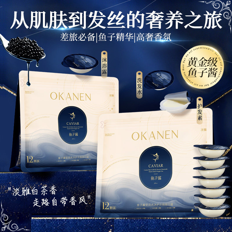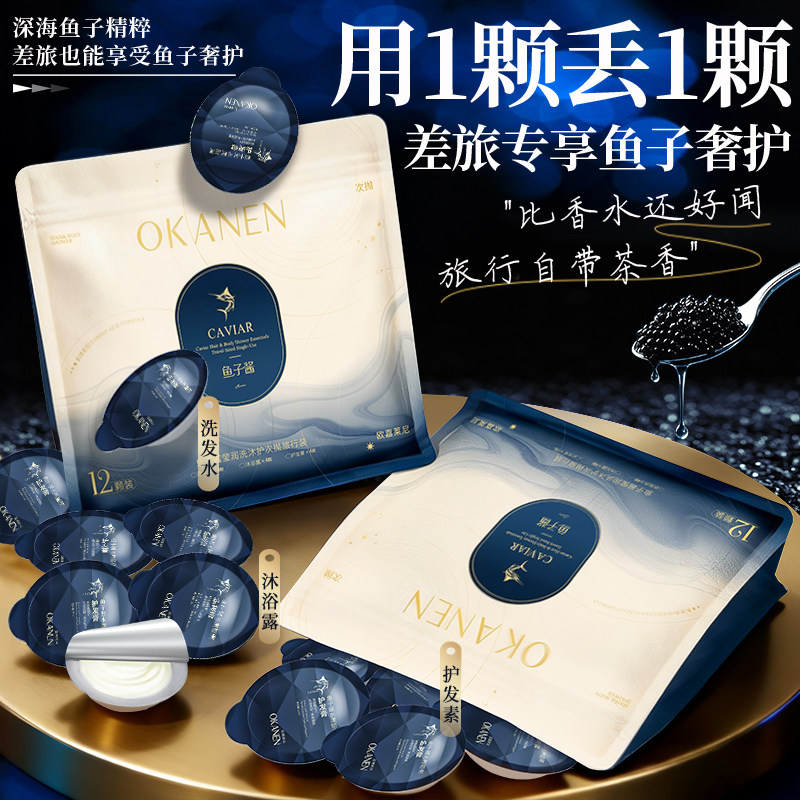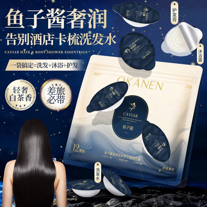 鱼子酱次抛型旅行装洗发水控油蓬松持久留香沐浴露护发膏三件套袋