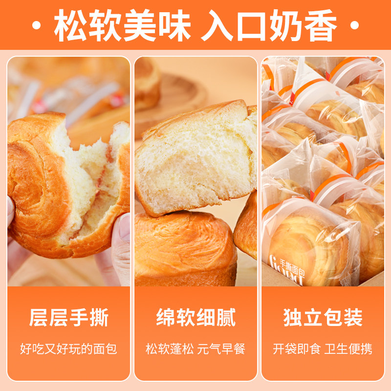 泓一圆手撕面包整箱批发健康速食早餐面包办公室下午茶休闲零食品