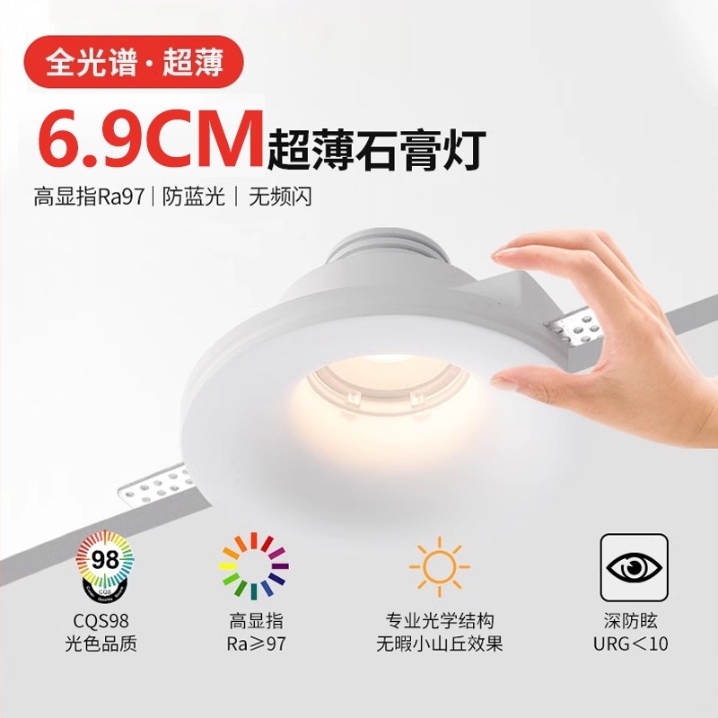 预埋石膏灯嵌入式无边框射灯小山丘深杯防眩智能内嵌弧面筒灯