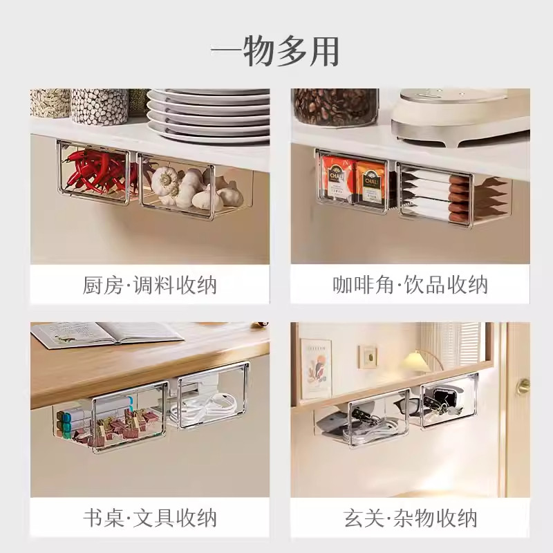桌下抽屉式收纳盒隐形办公室宿舍好物桌底隐藏整理盒免打孔置物架