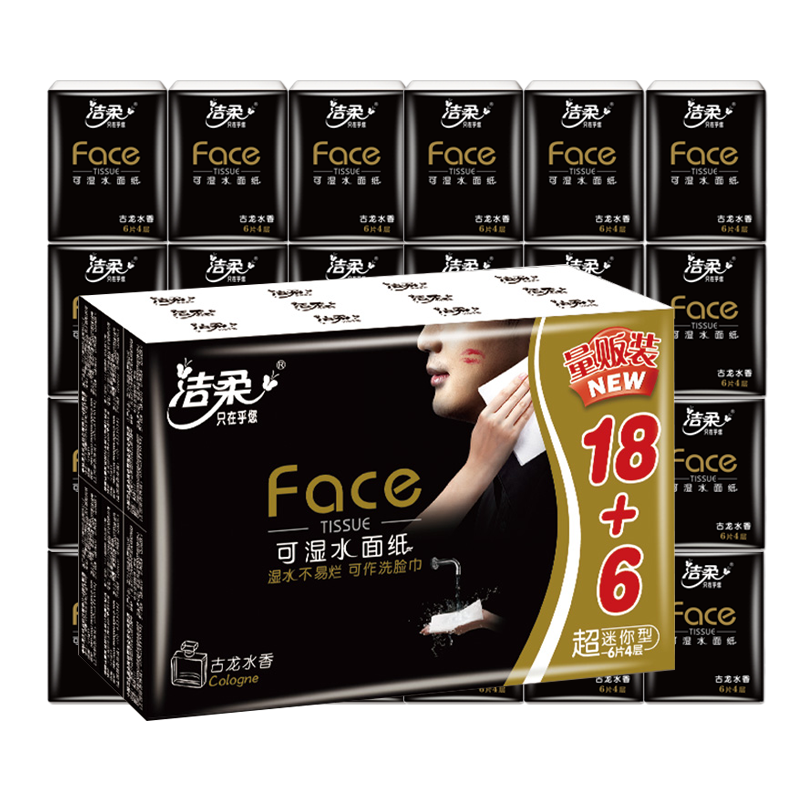 洁柔手帕纸4层古龙香纸巾面巾纸餐巾纸随身装便携式小包可湿水