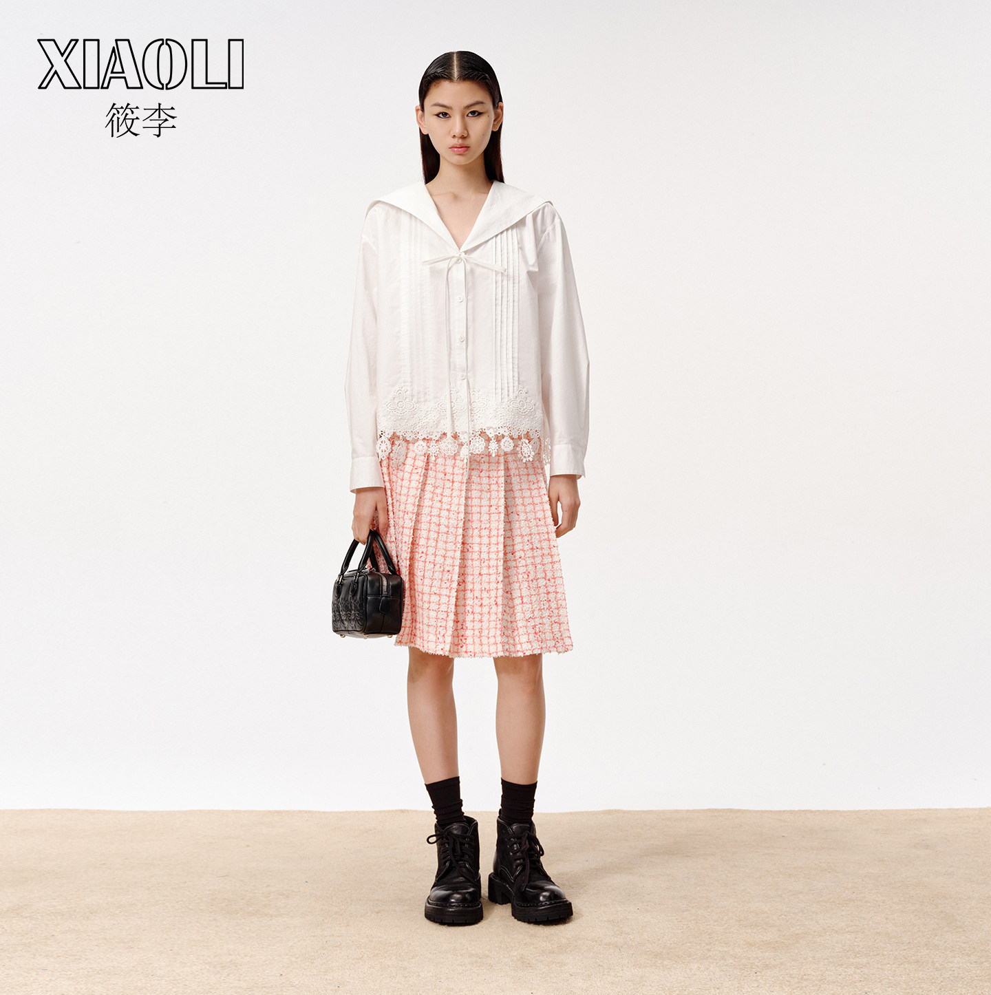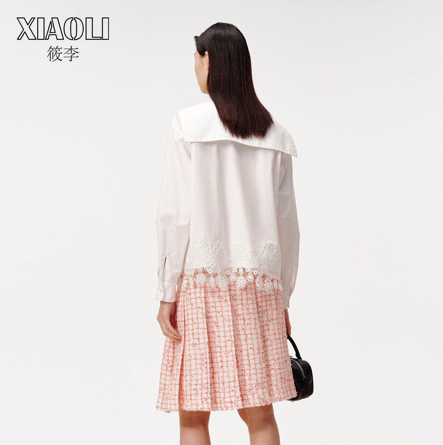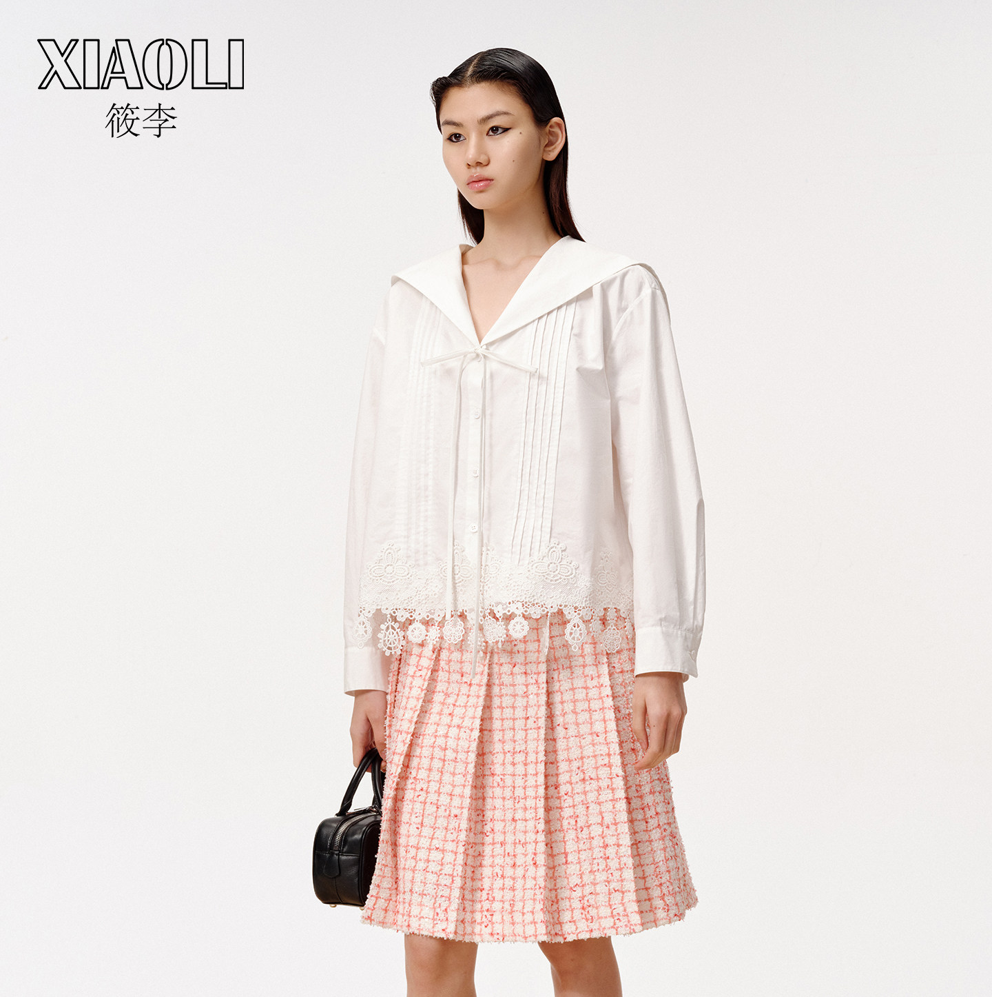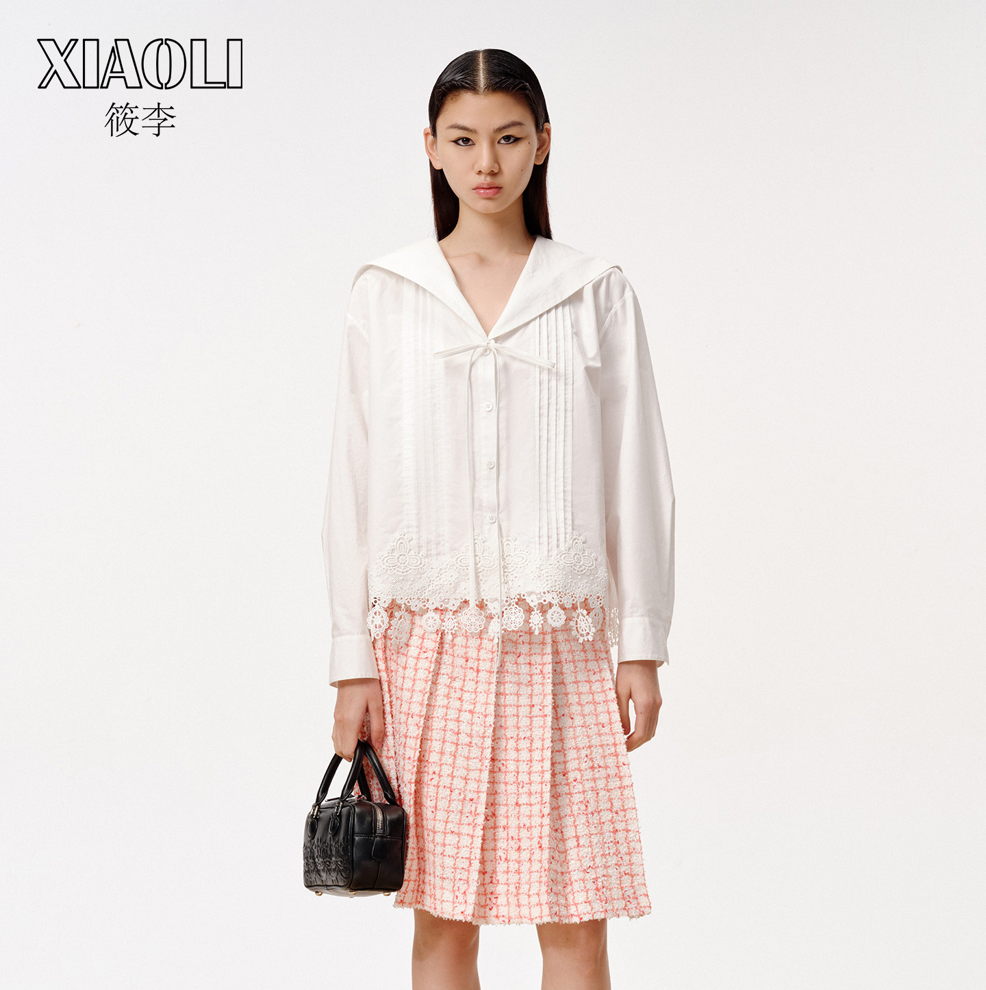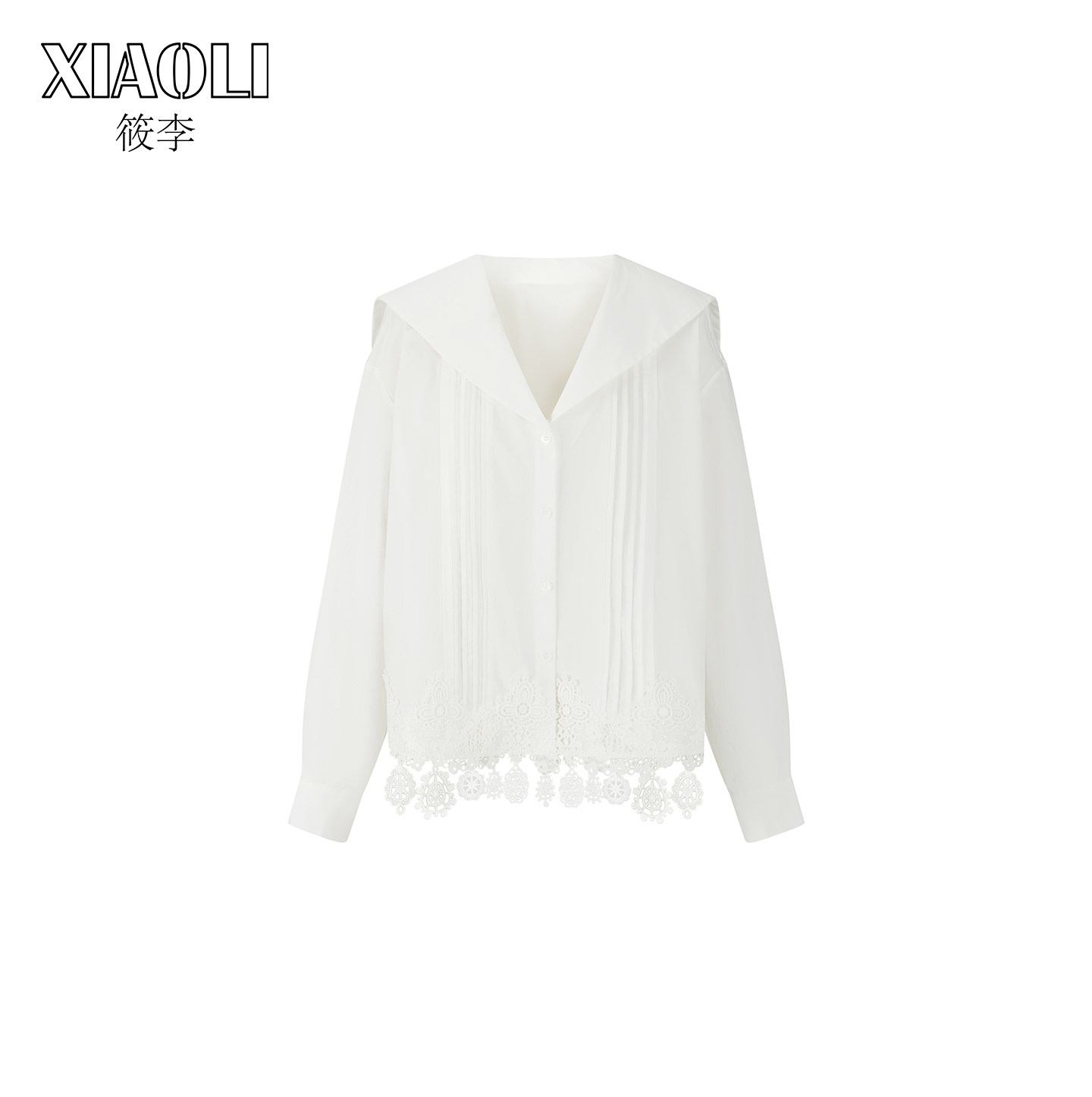 【XIAOLI筱李】纯棉蕾丝花边白色海军领塔克衬衫女上衣25秋新品