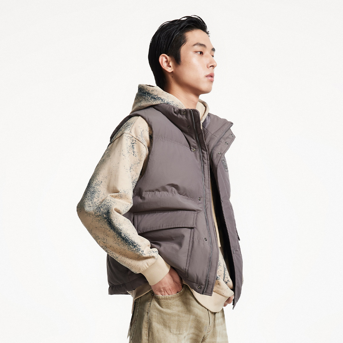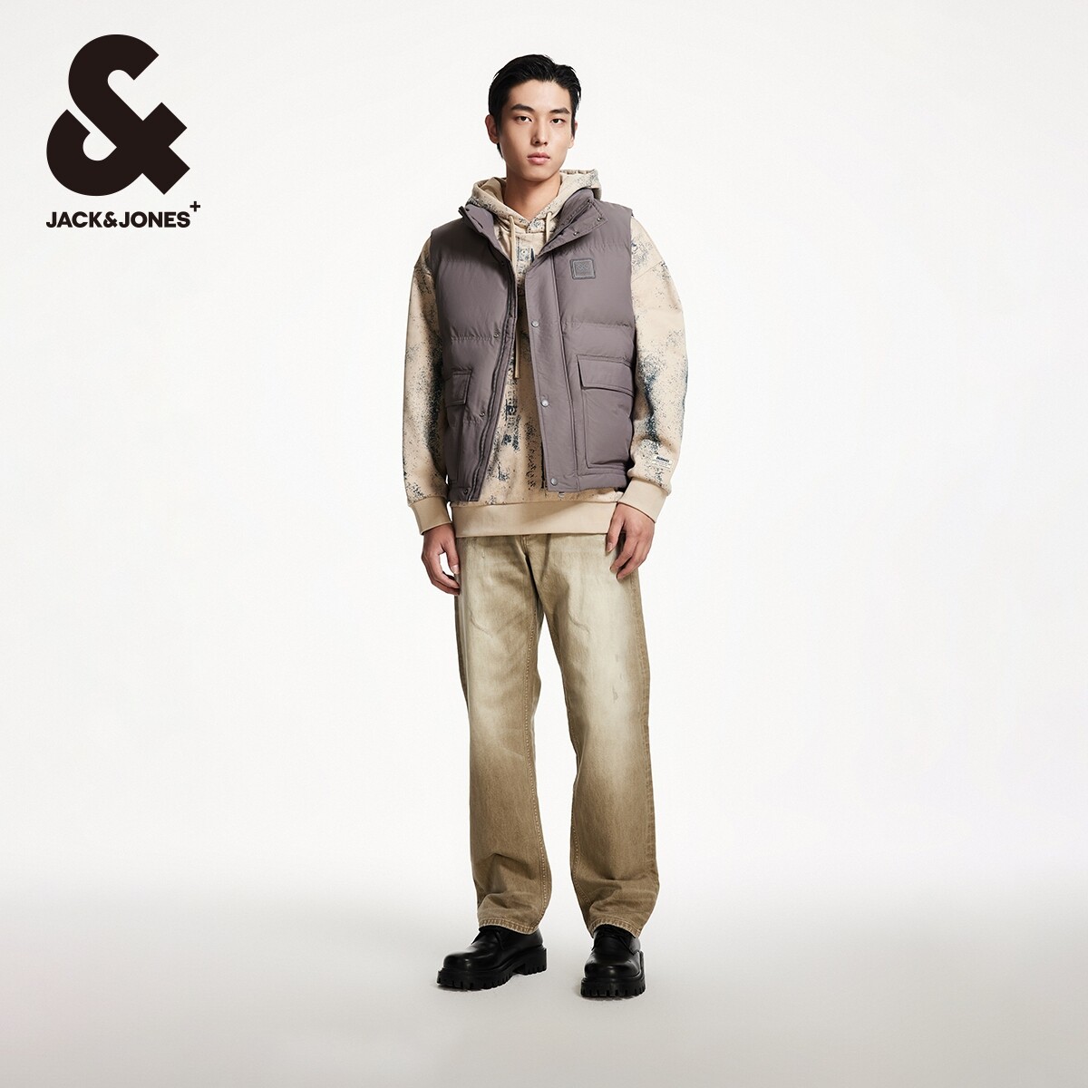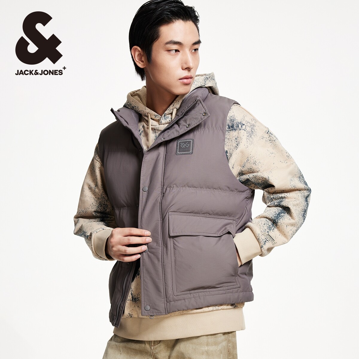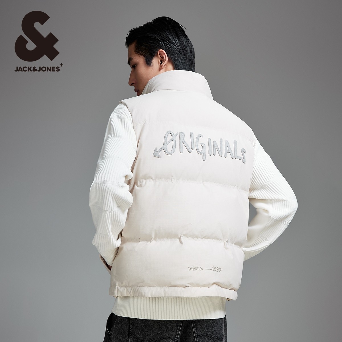 杰克琼斯秋冬新款格纹肌理感面料潮流舒适略宽松立领马甲男款男装