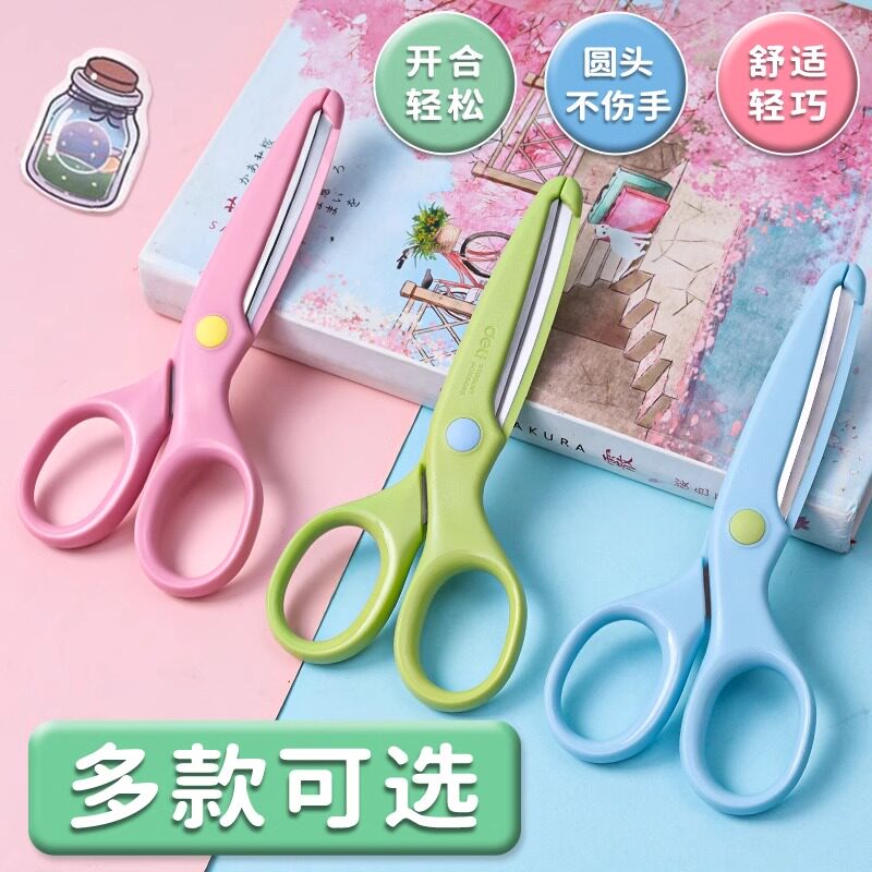 得力儿童剪刀手工安全剪刀小学生diy剪纸折纸剪子不伤手美术专用幼儿园手工专用圆头便携式圆头塑料小号剪子