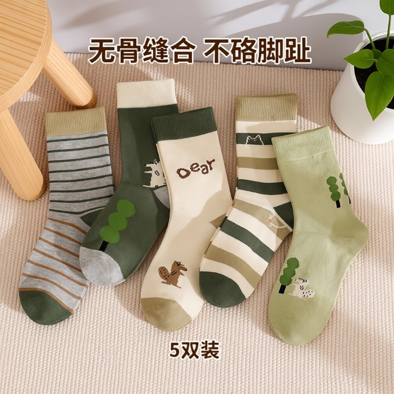 纯棉童袜春秋款夏季薄款防臭不起球男女袜子全棉中筒袜时尚儿童袜