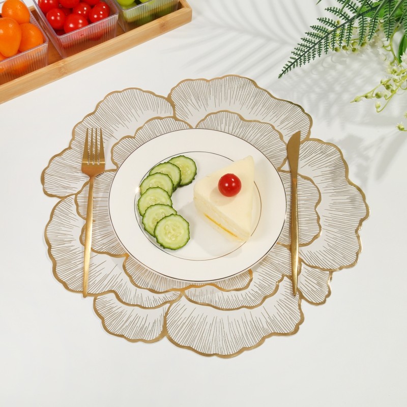 轻奢荷花防滑餐垫PVC隔热垫酒店家用西餐盘垫ins风桌垫碗垫装饰垫