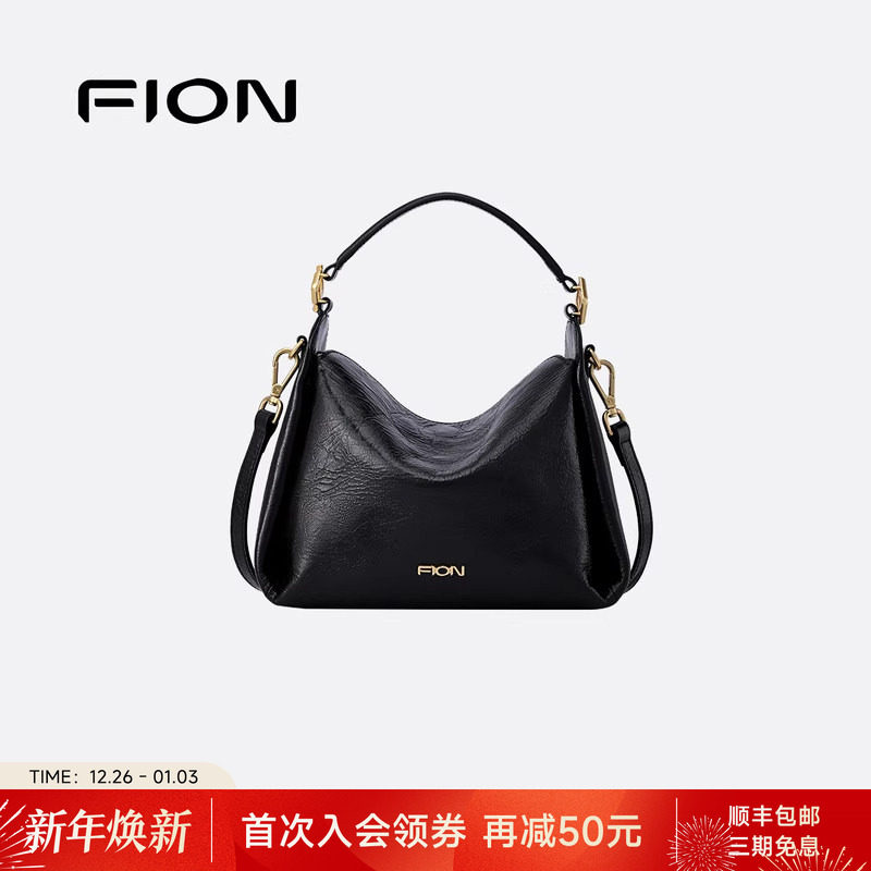 Fion/菲安妮女包复古饺子包新款头层牛皮手提小包真皮单肩斜挎包