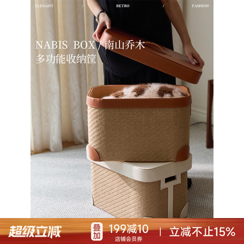 蜡笔派南山乔木收纳筐黄麻手工编织脏衣篓篮带盖多用家居储物箱框
