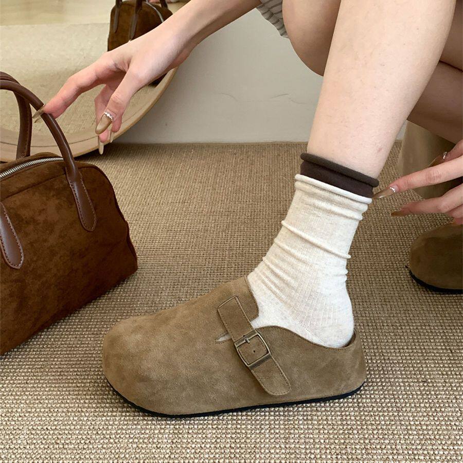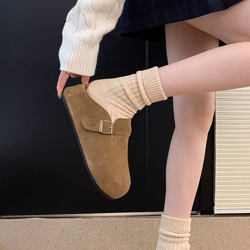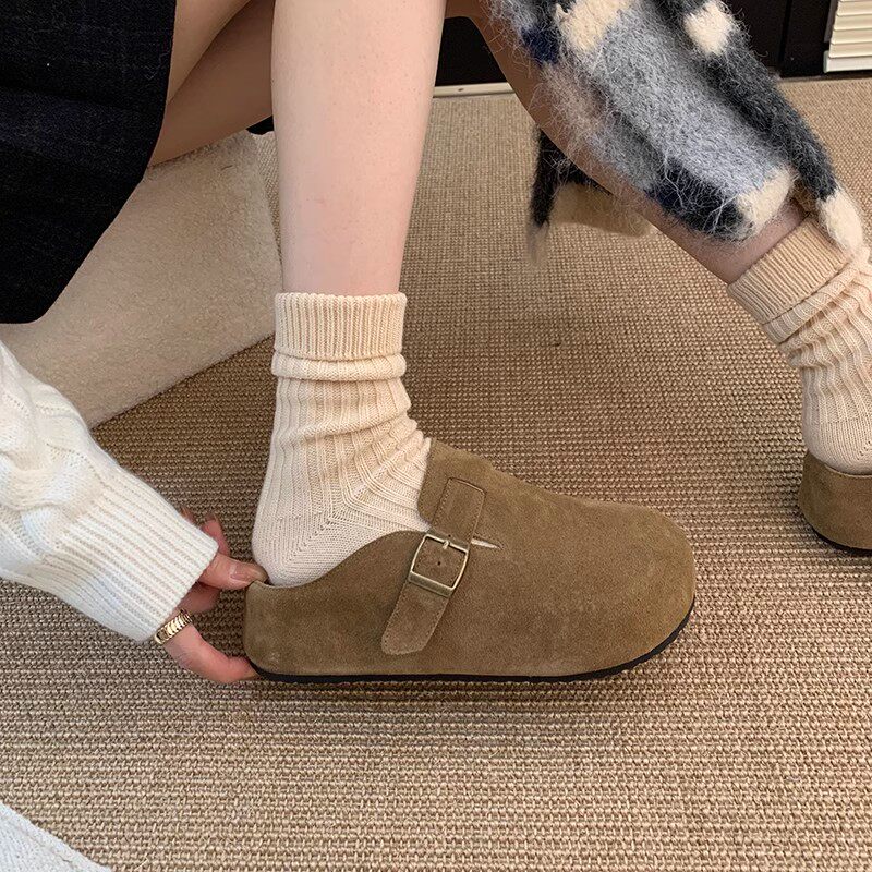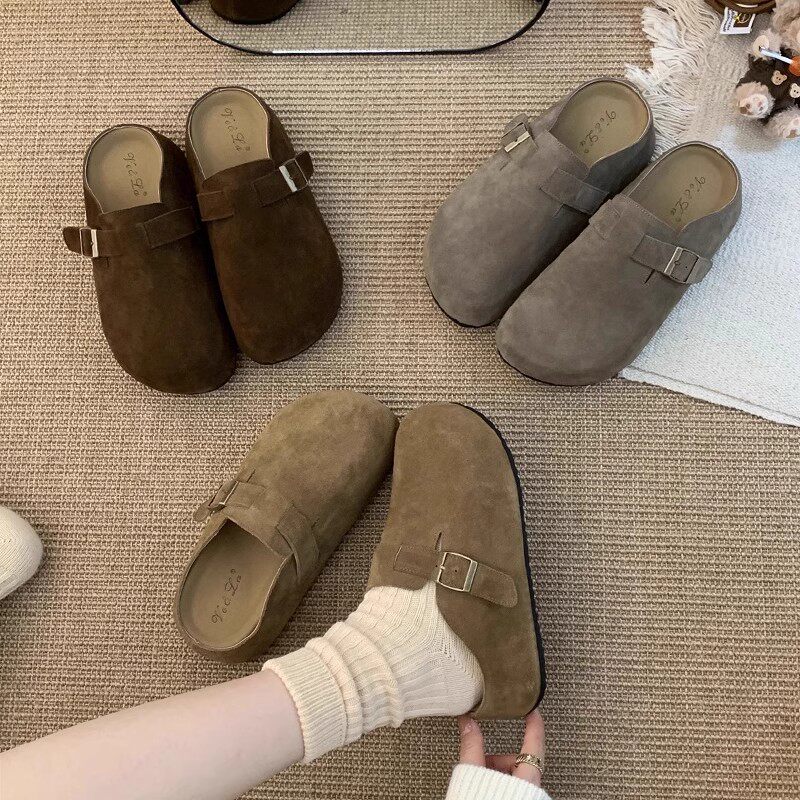 "小土豆天菜"软皮松果勃肯鞋女春秋复古厚底一脚蹬外穿包头半拖鞋