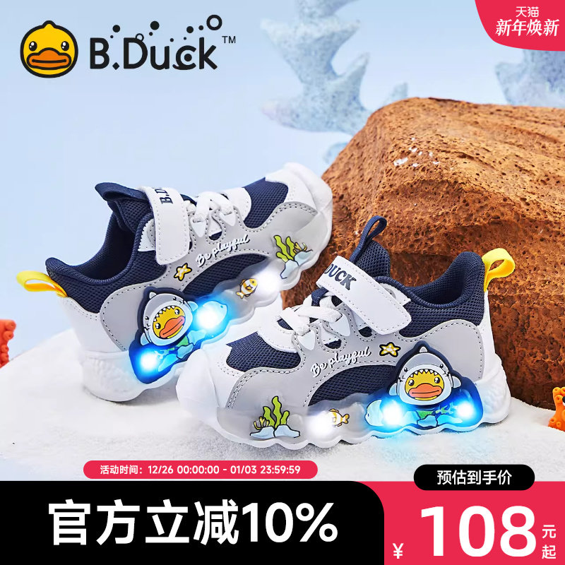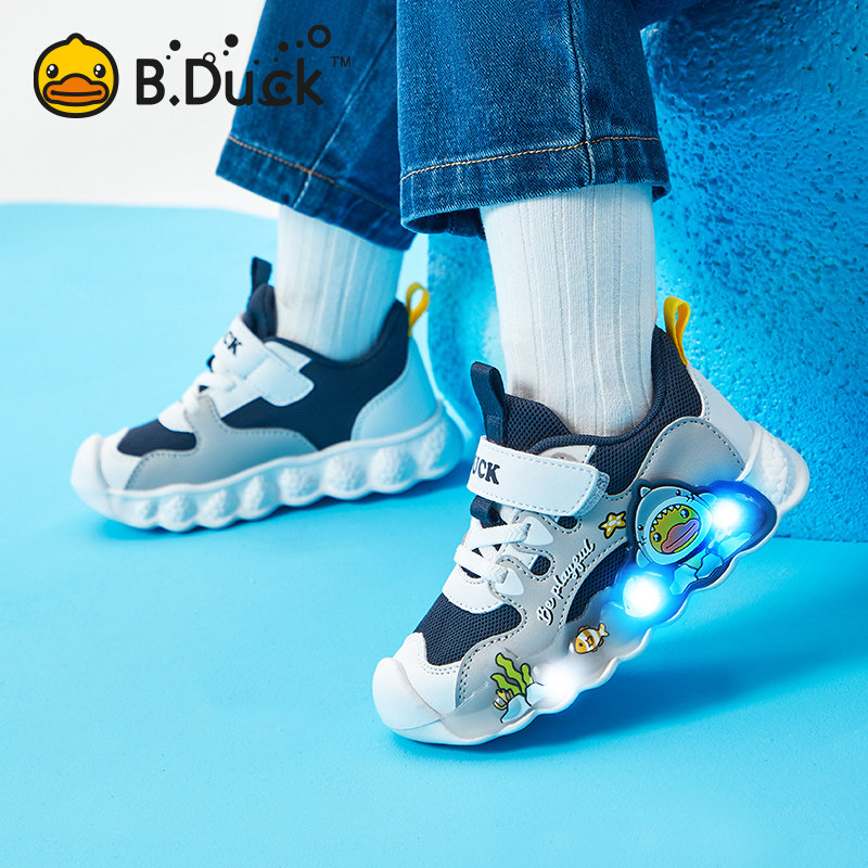 小黄鸭童鞋男童网鞋宝宝鞋子春秋新款儿童运动鞋小童亮灯鞋发光鞋