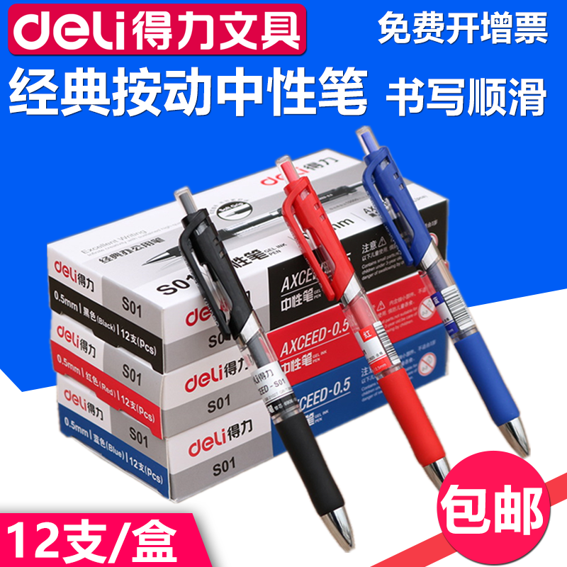 得力文具中性笔按动笔黑色0.5子弹头红笔学生用可定制笔广告笔企业展会礼品笔刻字商务圆珠笔s01升级超越k35