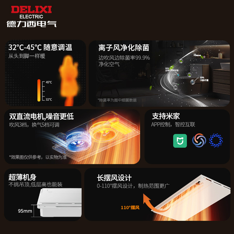 德力西风暖浴霸智能卫生间取暖排气扇照明一体集成吊顶灯暖暖风机