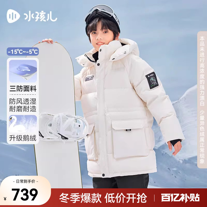 【极寒系列】水孩儿儿童鹅绒服青少年2025秋冬三防亲子外套羽绒服
