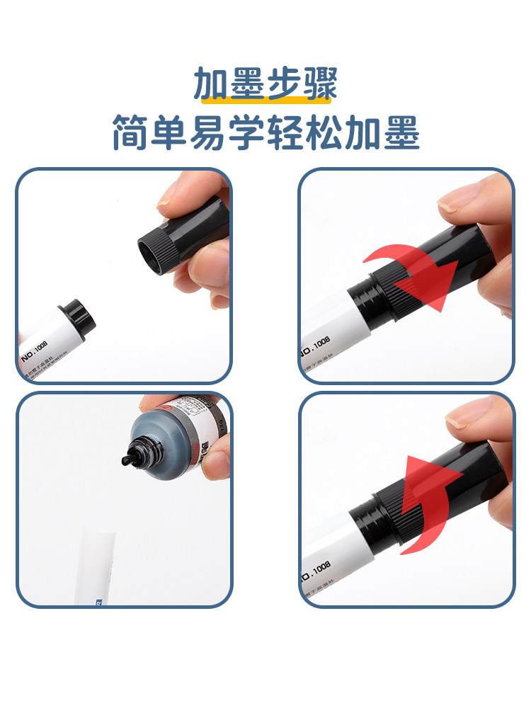 可加墨水白板笔儿童无毒可擦大容量批发教师用粗头记号水性彩色大头笔套装办公黑板画板墨水补充液写字笔专用