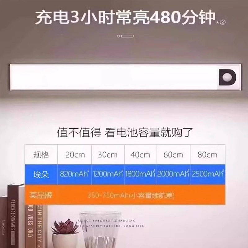 人体感应灯带橱柜灯LED充电磁吸无线自粘厨房衣柜夜灯条语音卧室