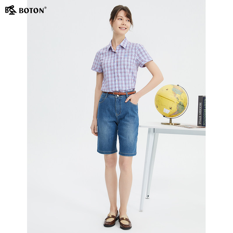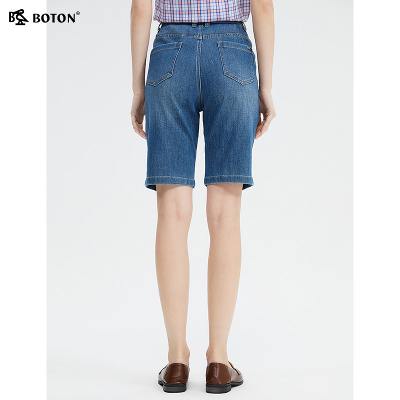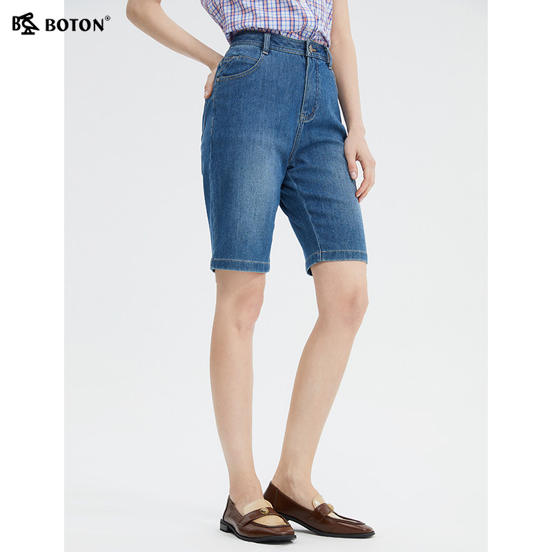 波顿女士2025春夏新款浅蓝色牛仔短裤高端美式休闲裤子