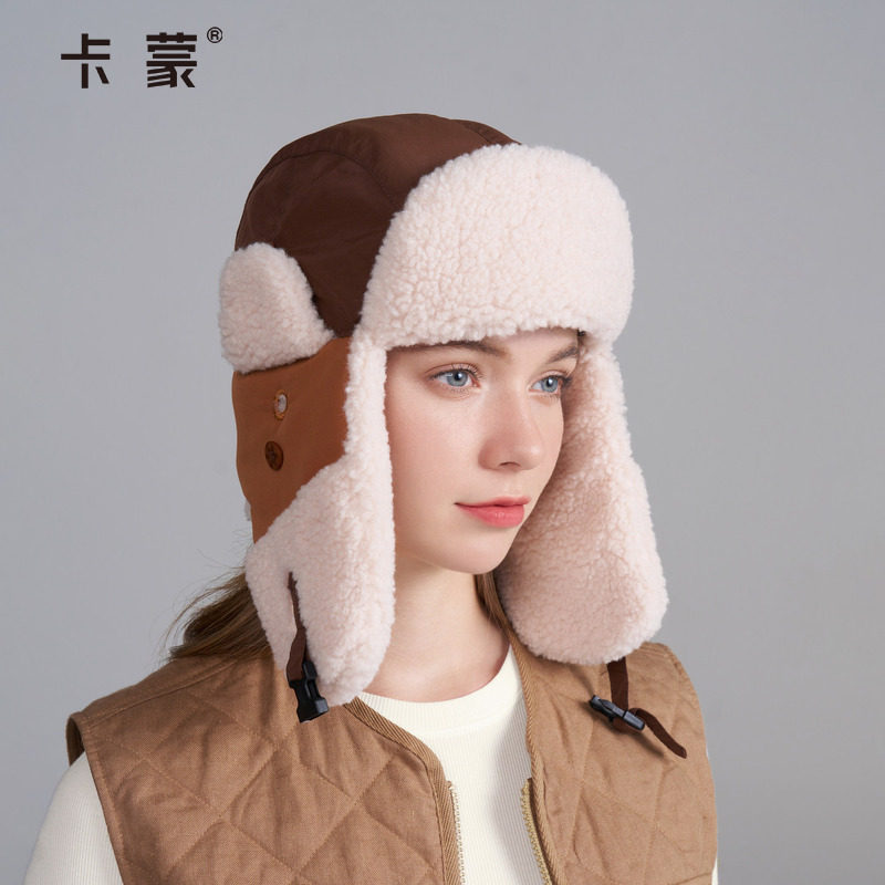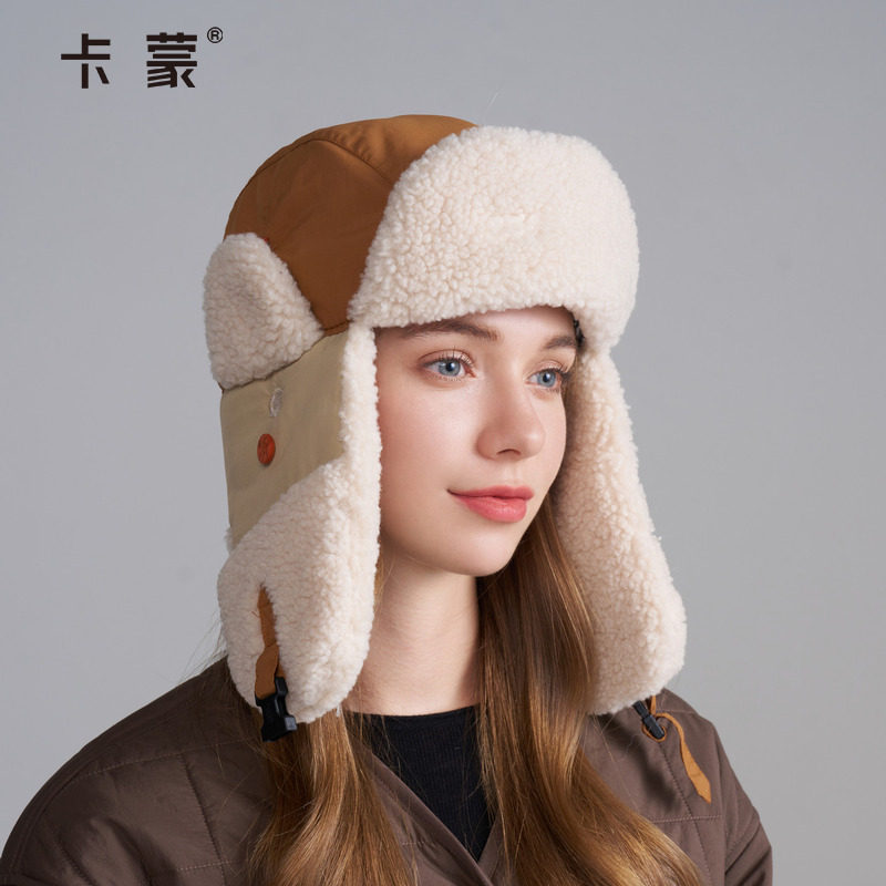 卡蒙帽子女冬加厚保暖雷锋帽骑行防风防寒护耳帽东北滑雪装备棉帽