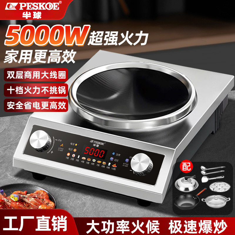 正品半球5000W凹面电磁炉家用大功率商用双旋钮防水省电炒菜火锅
