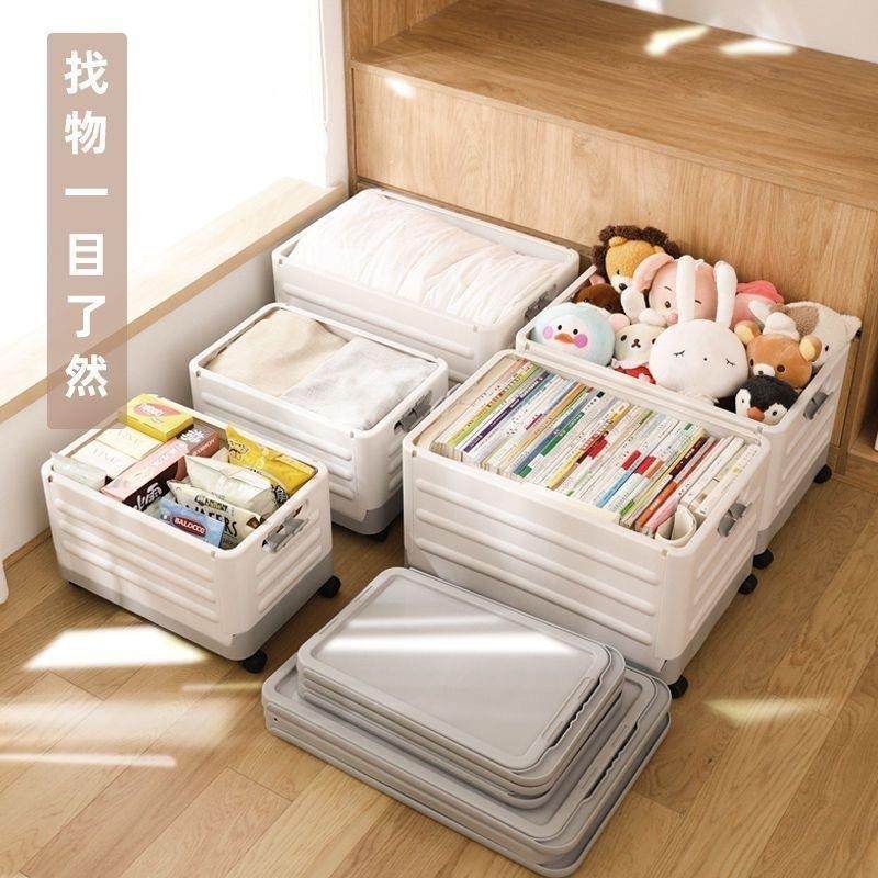 收纳箱学生家用宿舍教室装书本移动大号带轮滑轮拉杆可折叠储物箱