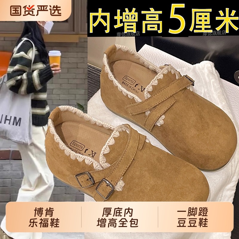厚底内增高全包勃肯鞋女2025秋季新款一脚蹬单鞋豆豆鞋博肯乐福鞋