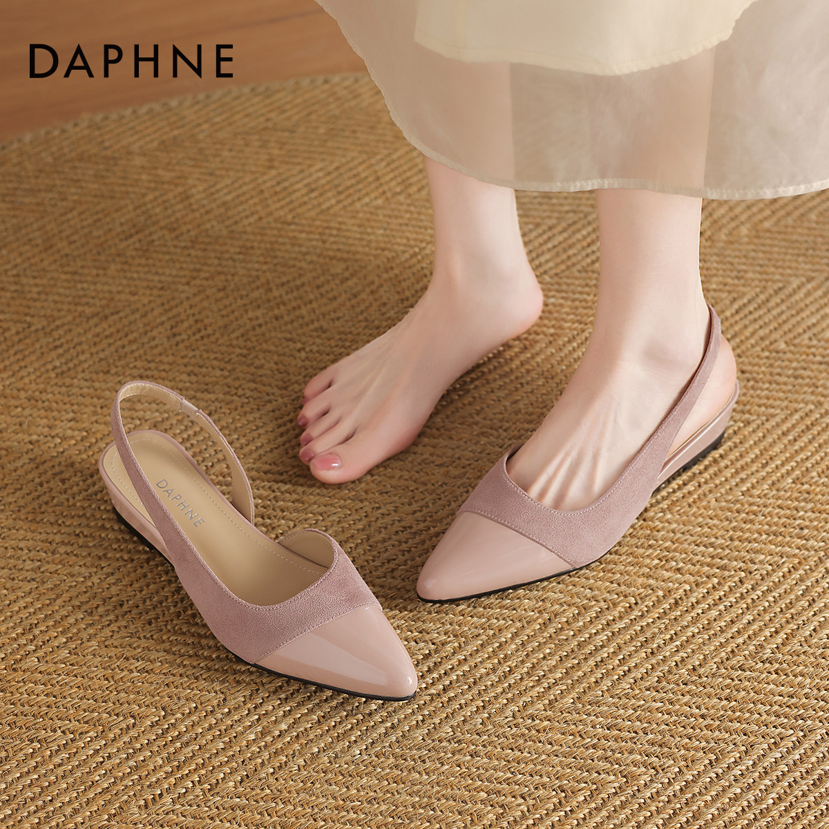 达芙妮尖头凉鞋女2025新款夏季法式浅口玛丽珍鞋女士包头凉单鞋女