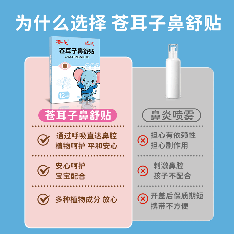葵花苍耳子鼻舒贴鼻炎贴儿童鼻塞通鼻神器通气鼻贴鼻康贴鼻塞鼻痒