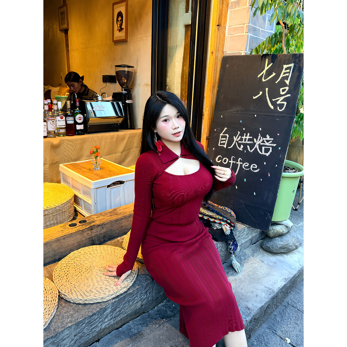 醉月衫微胖大码女装新年氛围感穿搭红色连衣裙秋冬裙子修身包臀裙