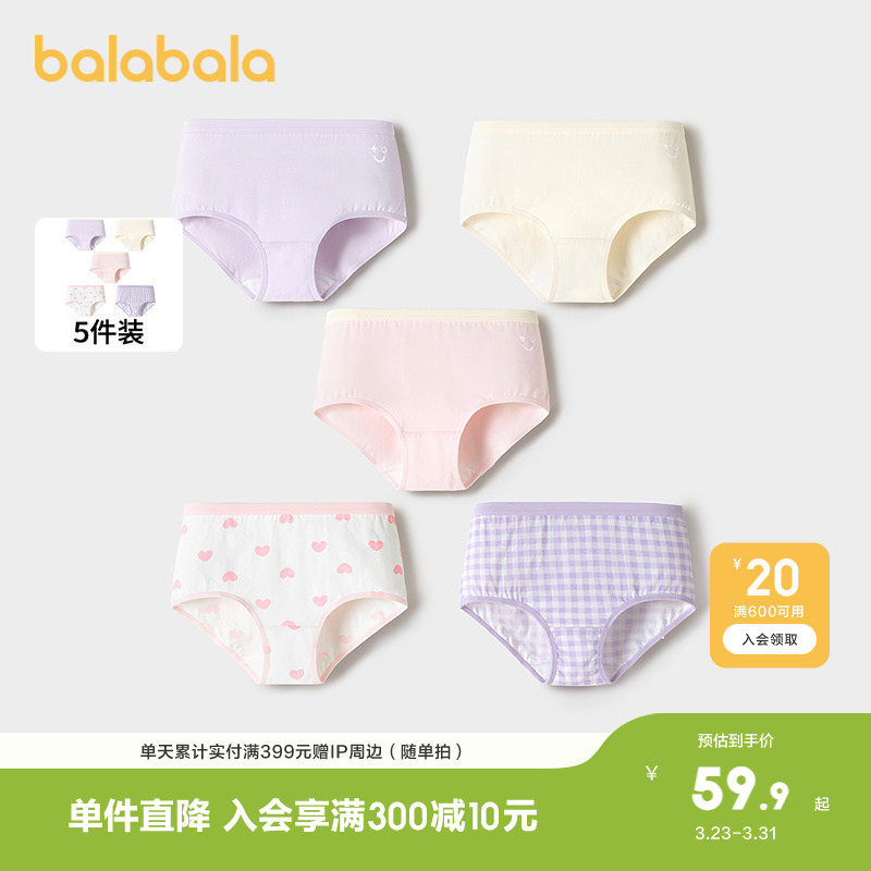 巴拉巴拉儿童内裤棉三角短裤女童弹力亲肤萌趣中幼童不夹PP五条装