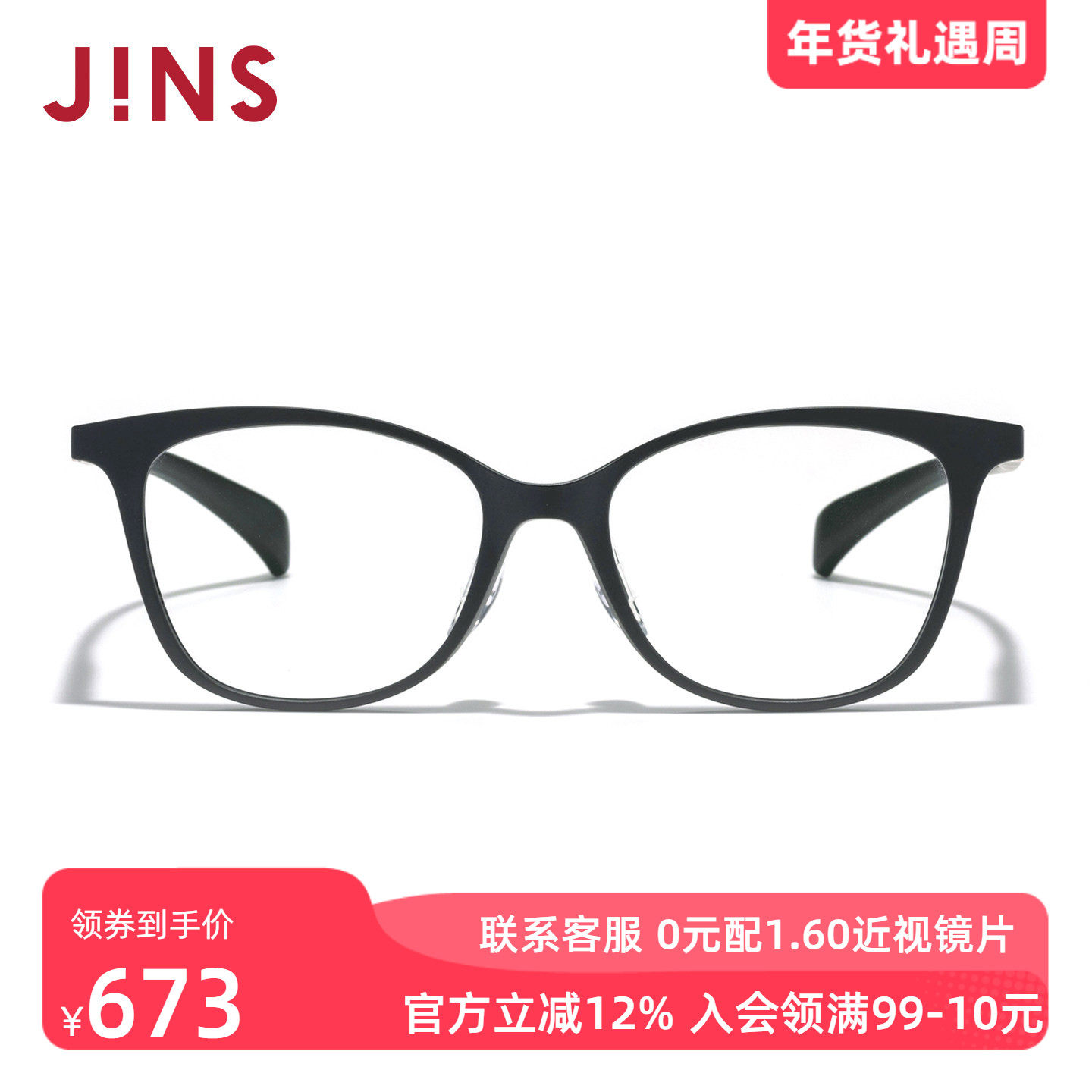 JINS睛姿近视眼镜360°系列男女方框架可加配防蓝光镜片URF24S265