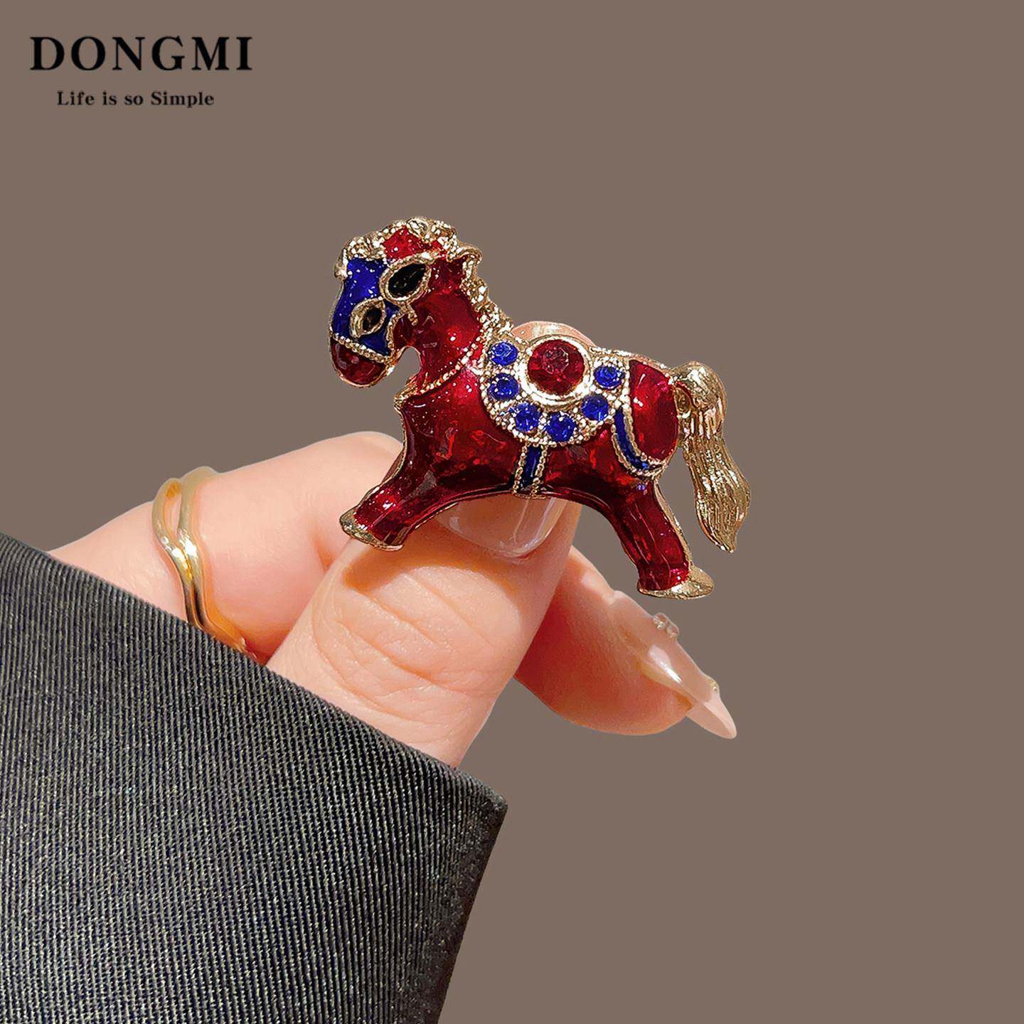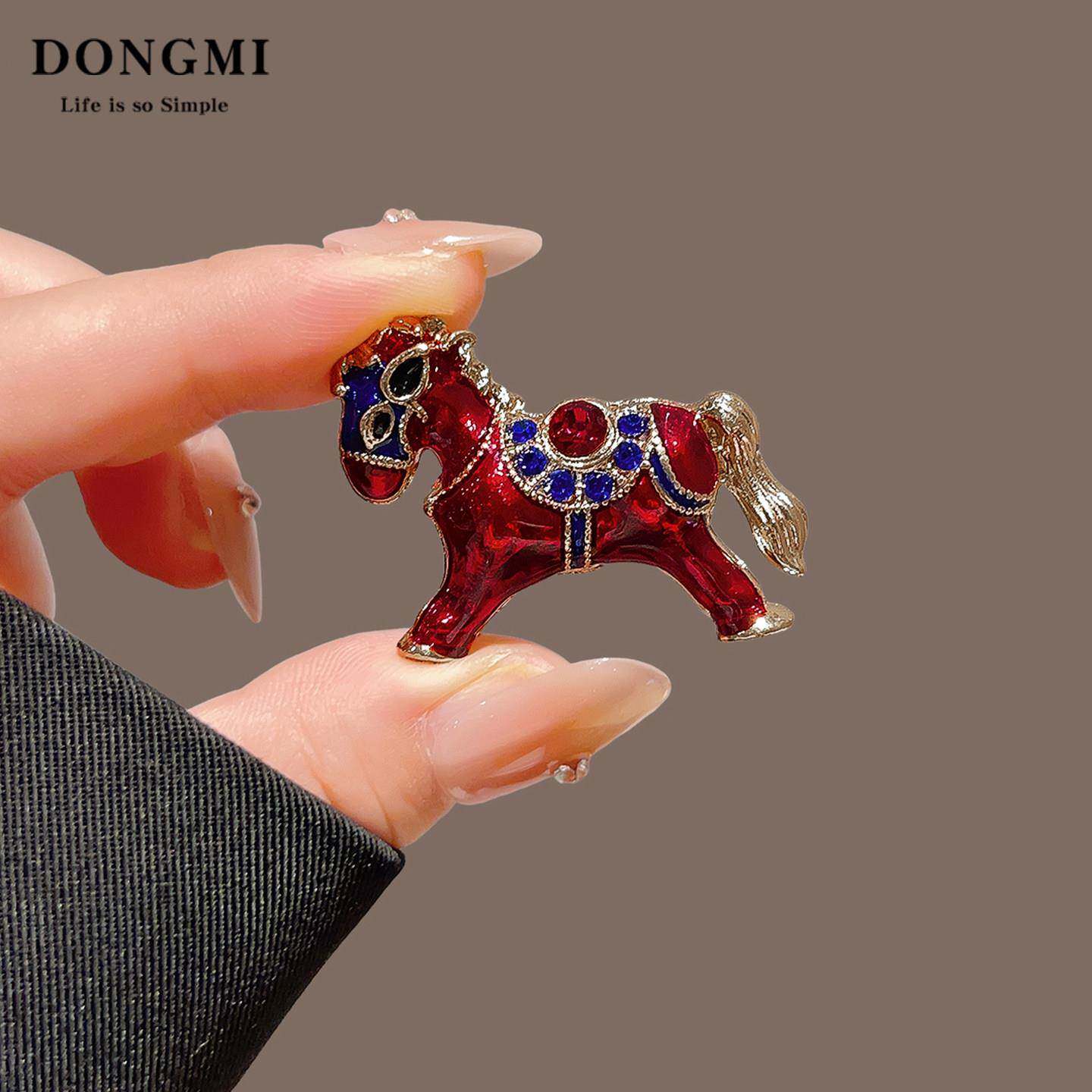 新款红色命年复古滴油小马百搭通勤胸针高档女气质别针配饰
