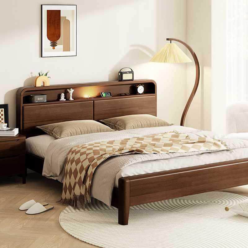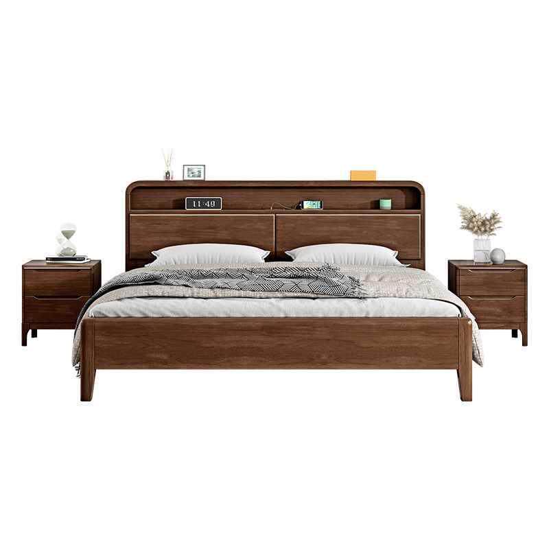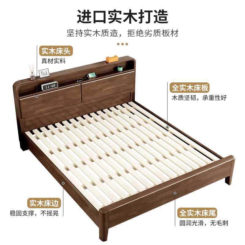 实木床现代简约北欧胡桃色1.8米1.5单双人床中古风主卧室婚床家具