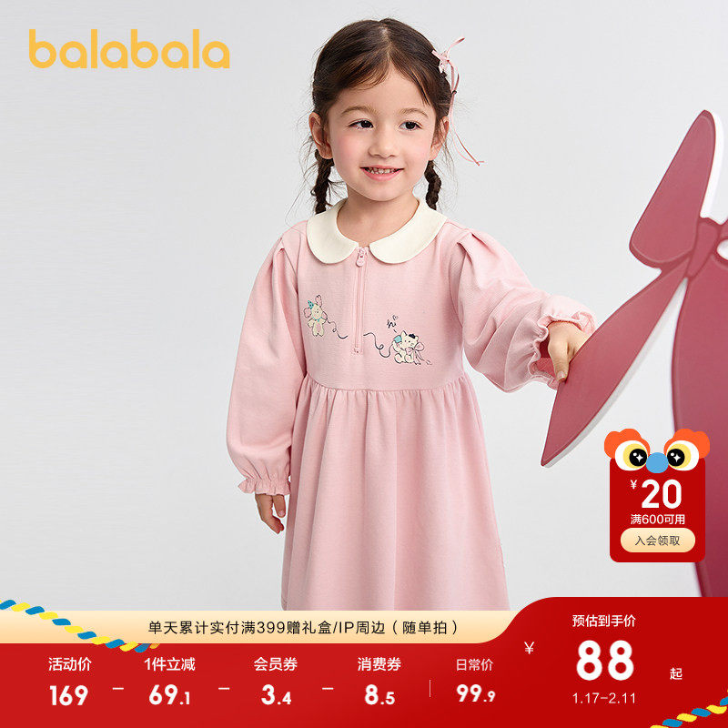 巴拉巴拉balaOne童装女公主裙2025秋冬新款儿童连衣裙针织网纱裙
