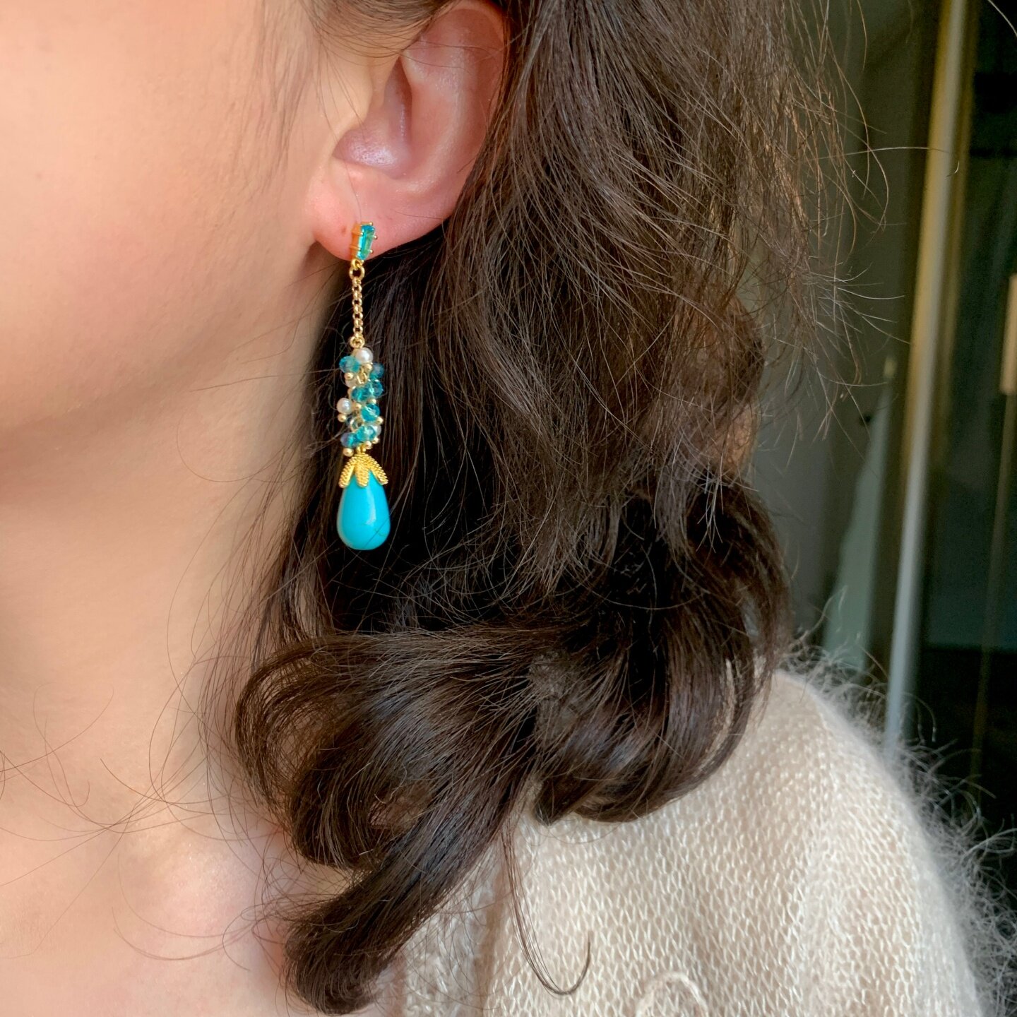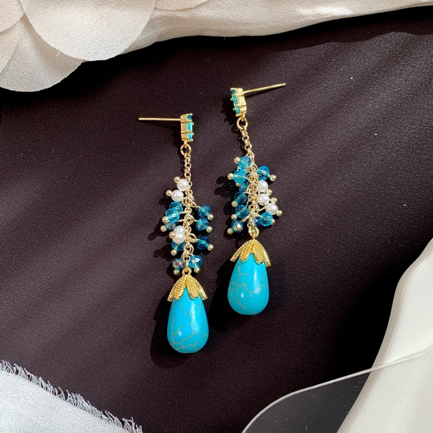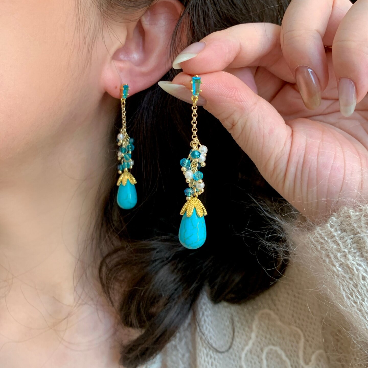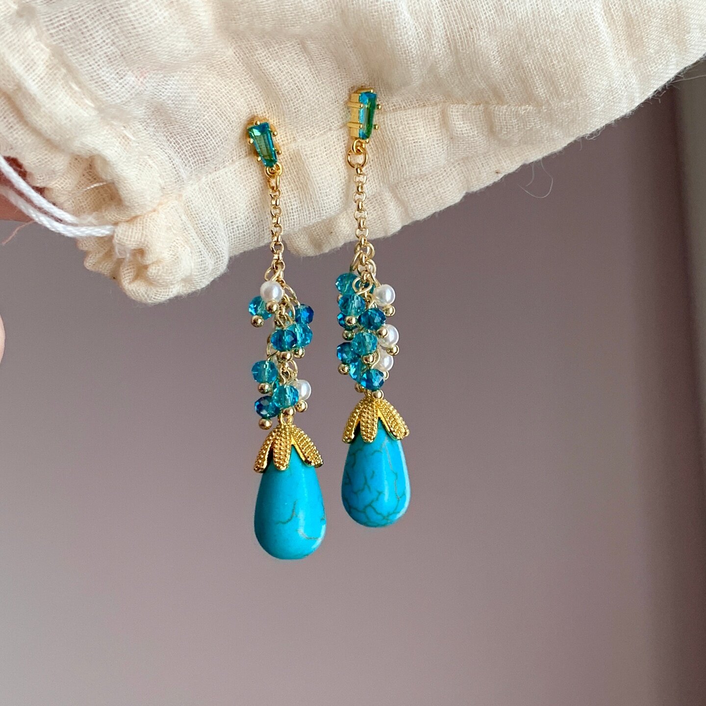 《楼兰》春夏民族风波西米亚长款流苏绿松石串珠耳夹耳饰耳钉耳环