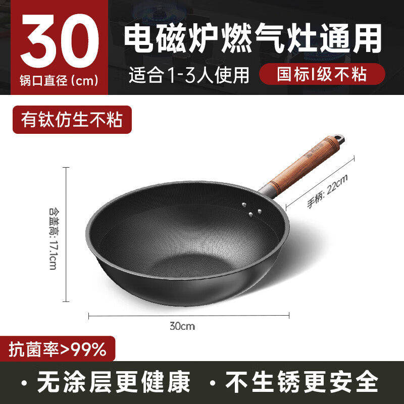 康巴赫有钛铁锅不粘锅无涂层炒锅家用炒菜锅电磁炉燃气专用锅子