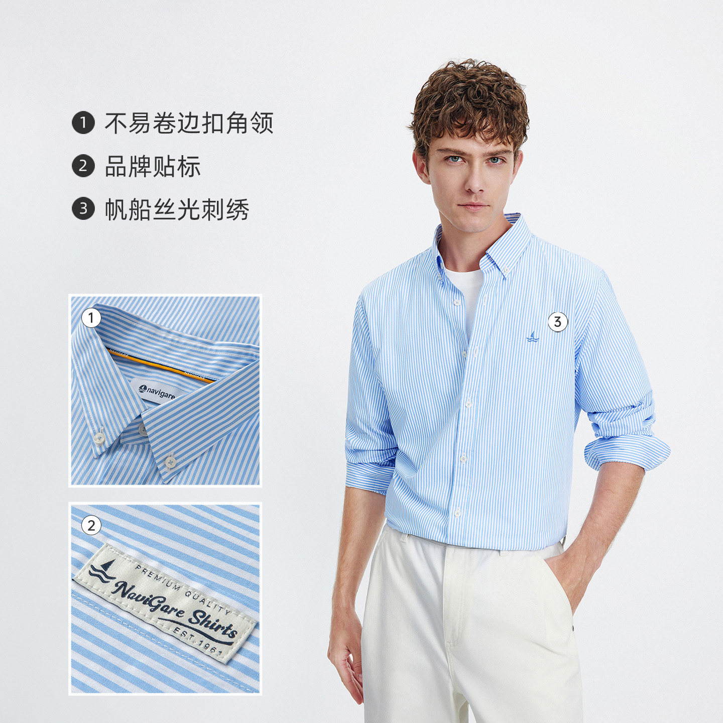Navigare意大利小帆船纯棉长袖衬衫男2026春季新款休闲条纹衬衣